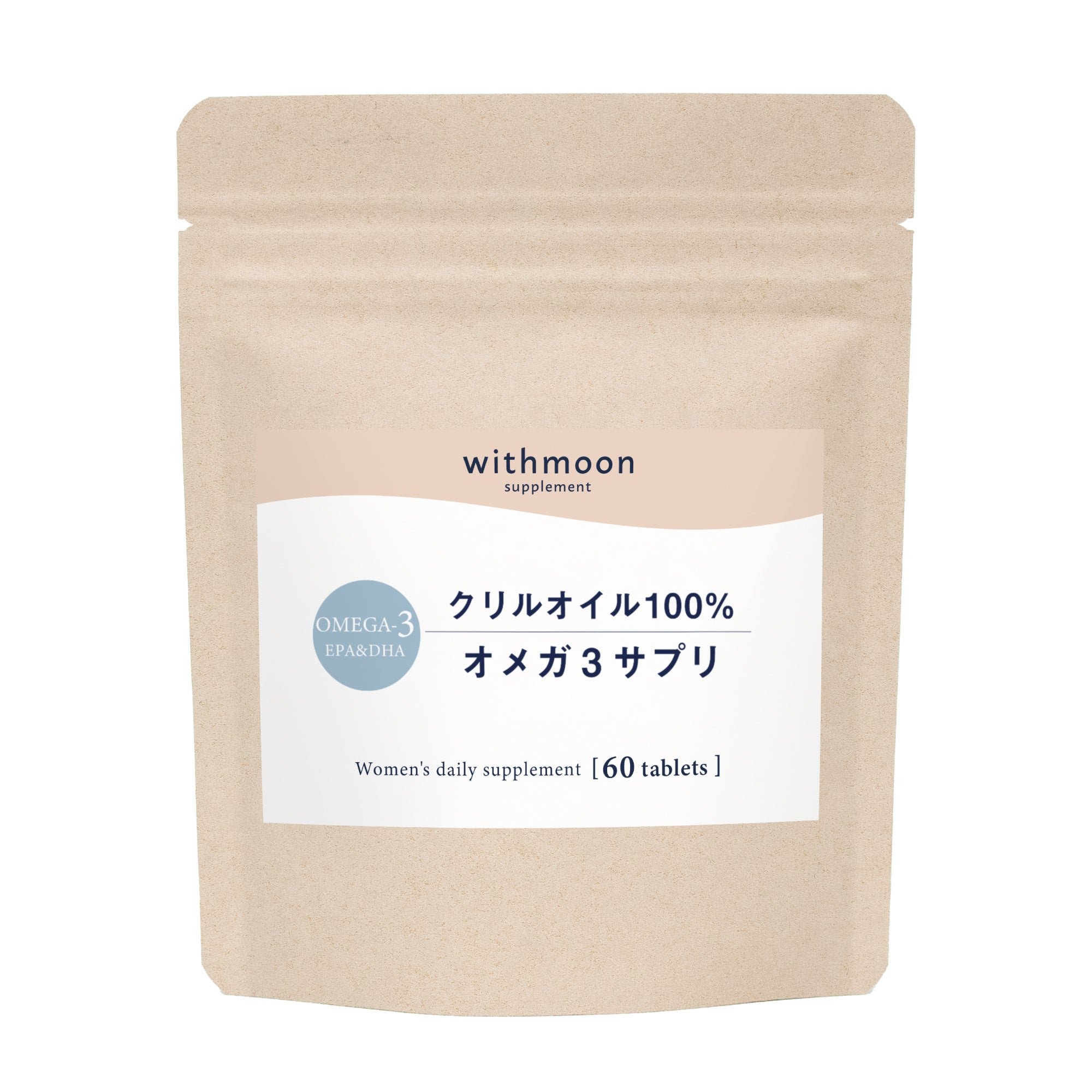 こだわりの原料にはDHA、EPAのオメガ3脂肪酸やアスタキサンチンなどが豊富に含まれている「クリルオイル」を採用し、飲んだ後の魚臭さがなく飲みやすいと好評です。女性の健康にとって積極的に取り入れたい栄養素の一つである「オメガ3脂肪酸」を、ぜひwithmoonのサプリメントで生活に取り入れてみてください。