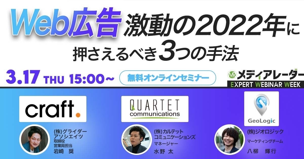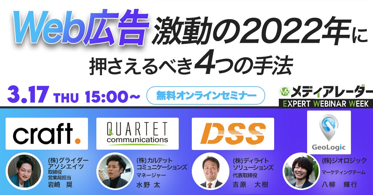 - 「Web広告 激動の2022年に押さえるべき3つの手法」3月17日(木)15:00~