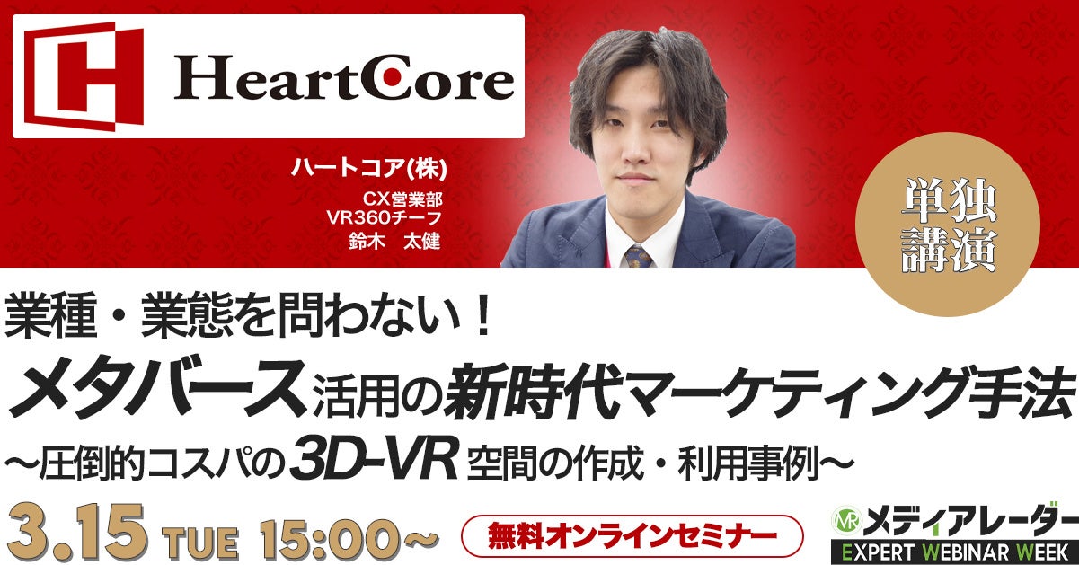 - 「業種・業態を問わない!メタバース活用の新時代マーケティング手法~圧倒的コスパの3D-VR空間の作成・利用事例」3月15日(火)15:00~