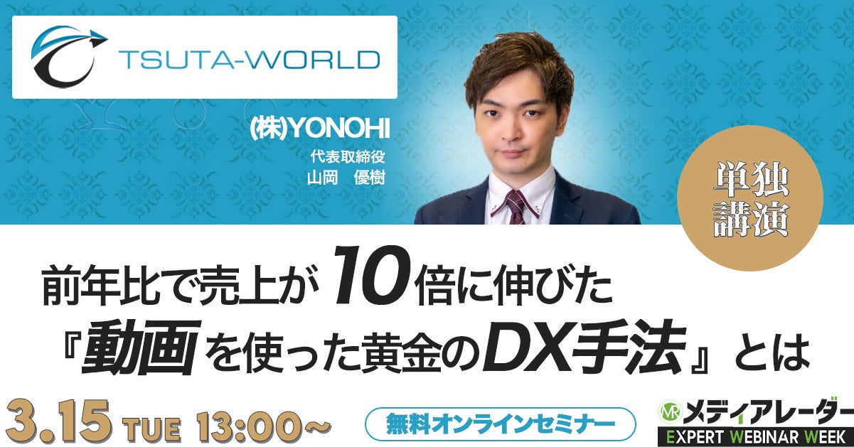 - 「前年比で売上が10倍に伸びた『動画を使った黄金のDX手法』とは?」3月15日(火)13:00~