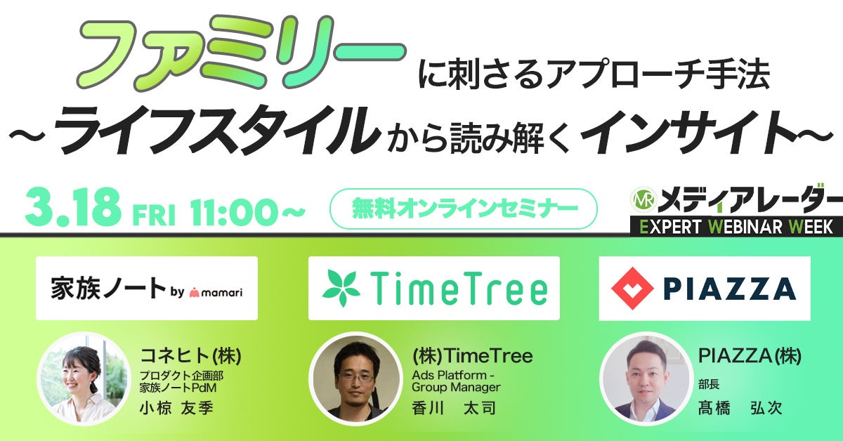 - 「ファミリーに刺さるアプローチ手法~ライフスタイルから読み解くインサイト~」3月18日(金)11:00~