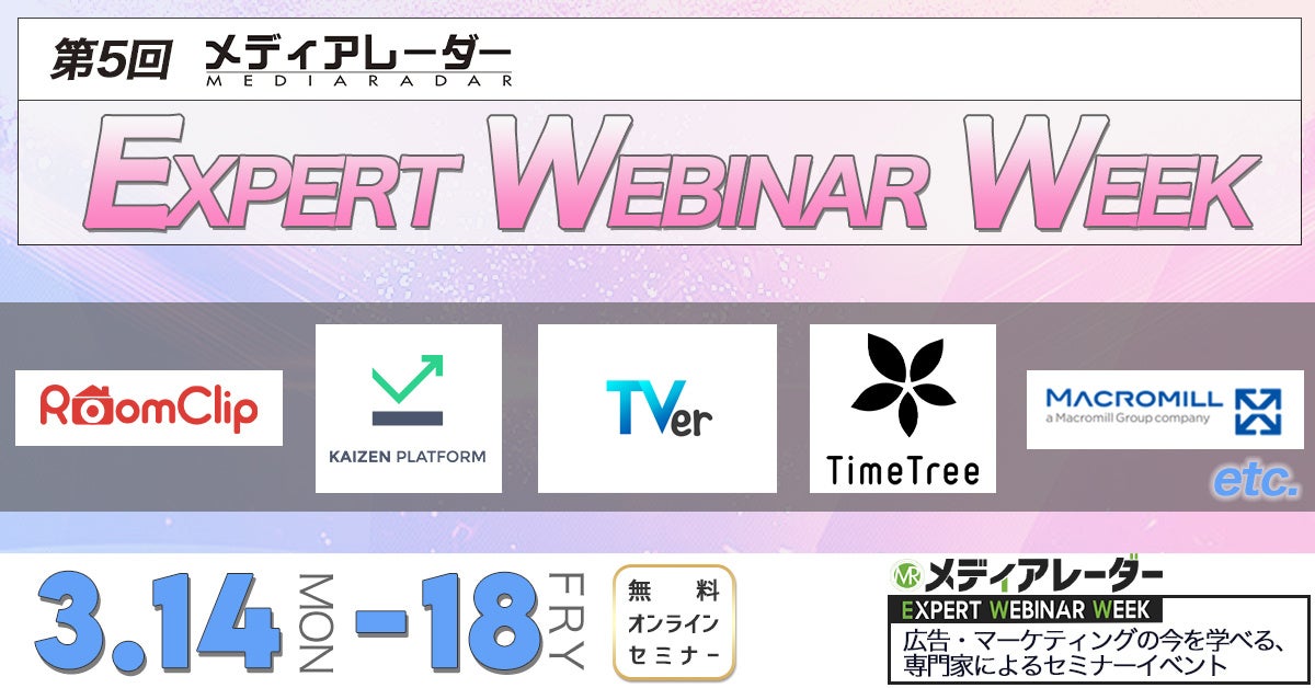 マーケティングセミナーイベント「第5回 メディアレーダー EXPERT WEBINAR WEEK」開催決定!広告・マーケティングの専門家が登壇。参加申し込み無料!