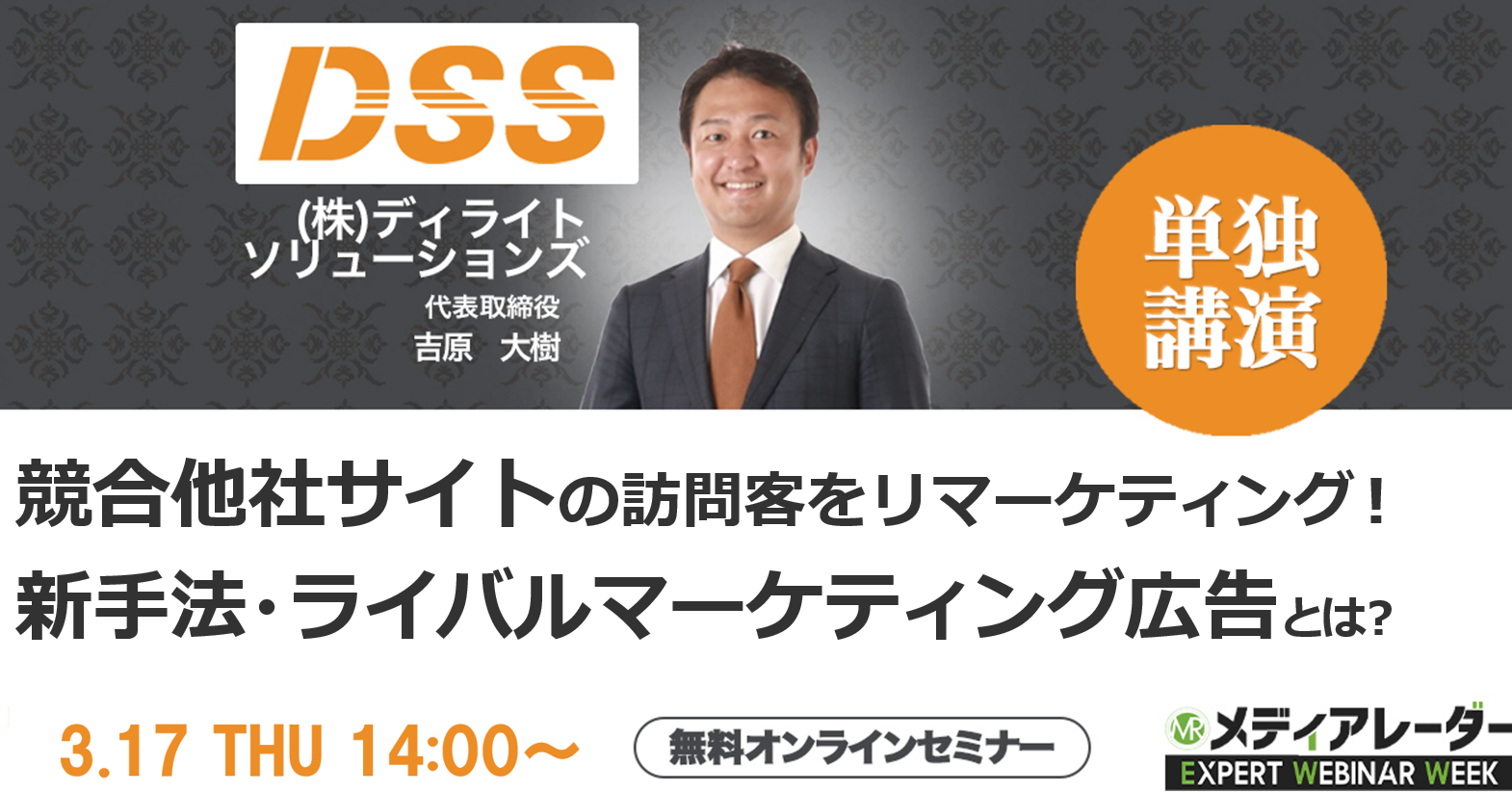 - 「競合他社サイトの訪問客をリマーケティング!新手法・ライバルマーケティング広告とは?」3月17日(木)14:00~