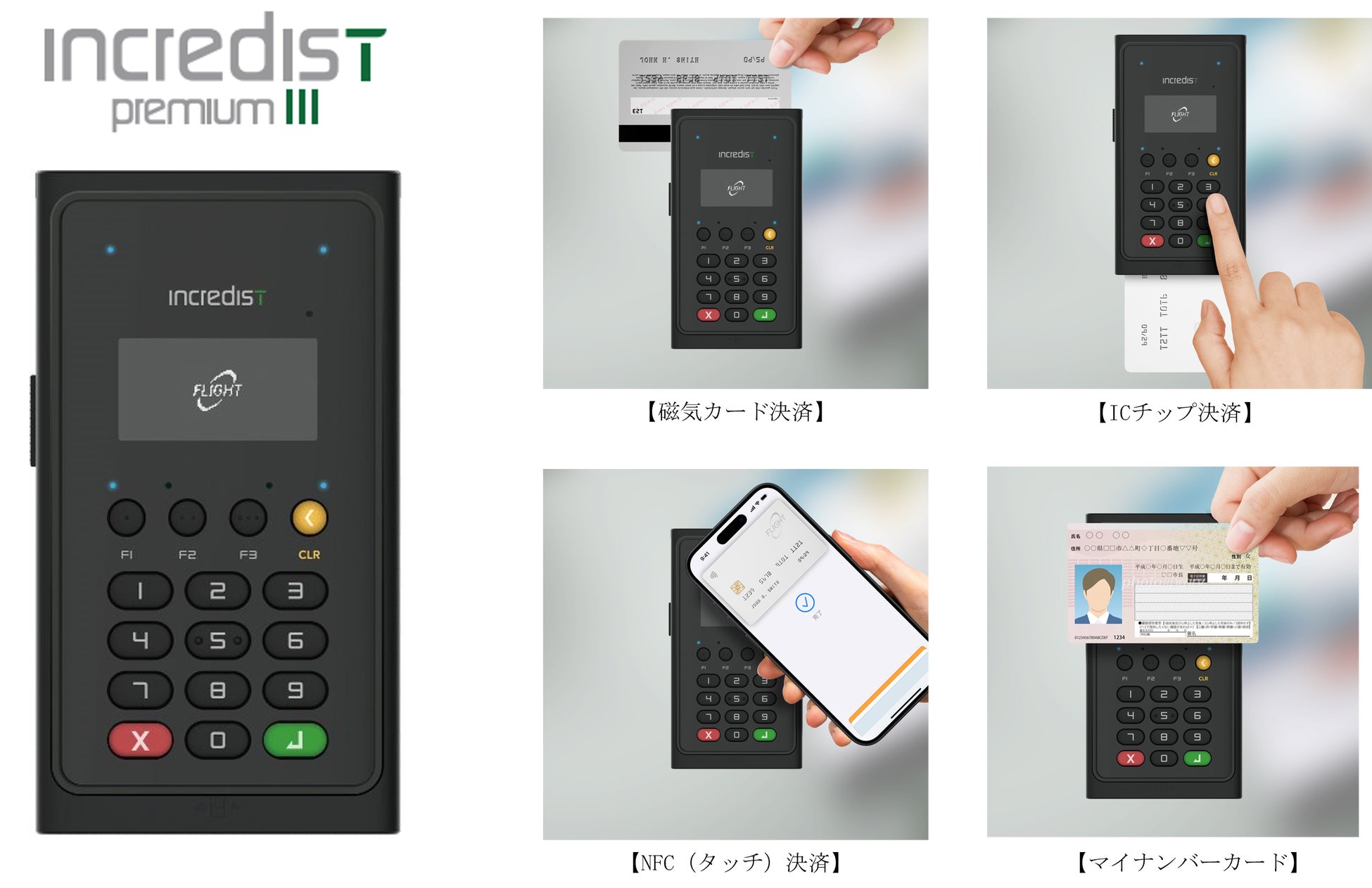 Incredist Premium シリーズ*1は、キャッシュレス決済に加え、マイナンバーカードの読み取り機能を兼ね備えた多機能型端末です。本端末の導入で、国内で加速するキャッシュレス決済の普及への対応だけでなく、マイナンバーカードを用いた厳格な本人確認などの市場ニーズに柔軟に対応できるようになります。複数の端末を用意する必要がなく、省スペースで効率的な運用を実現するため、今後の需要拡大が見込まれている製品です。