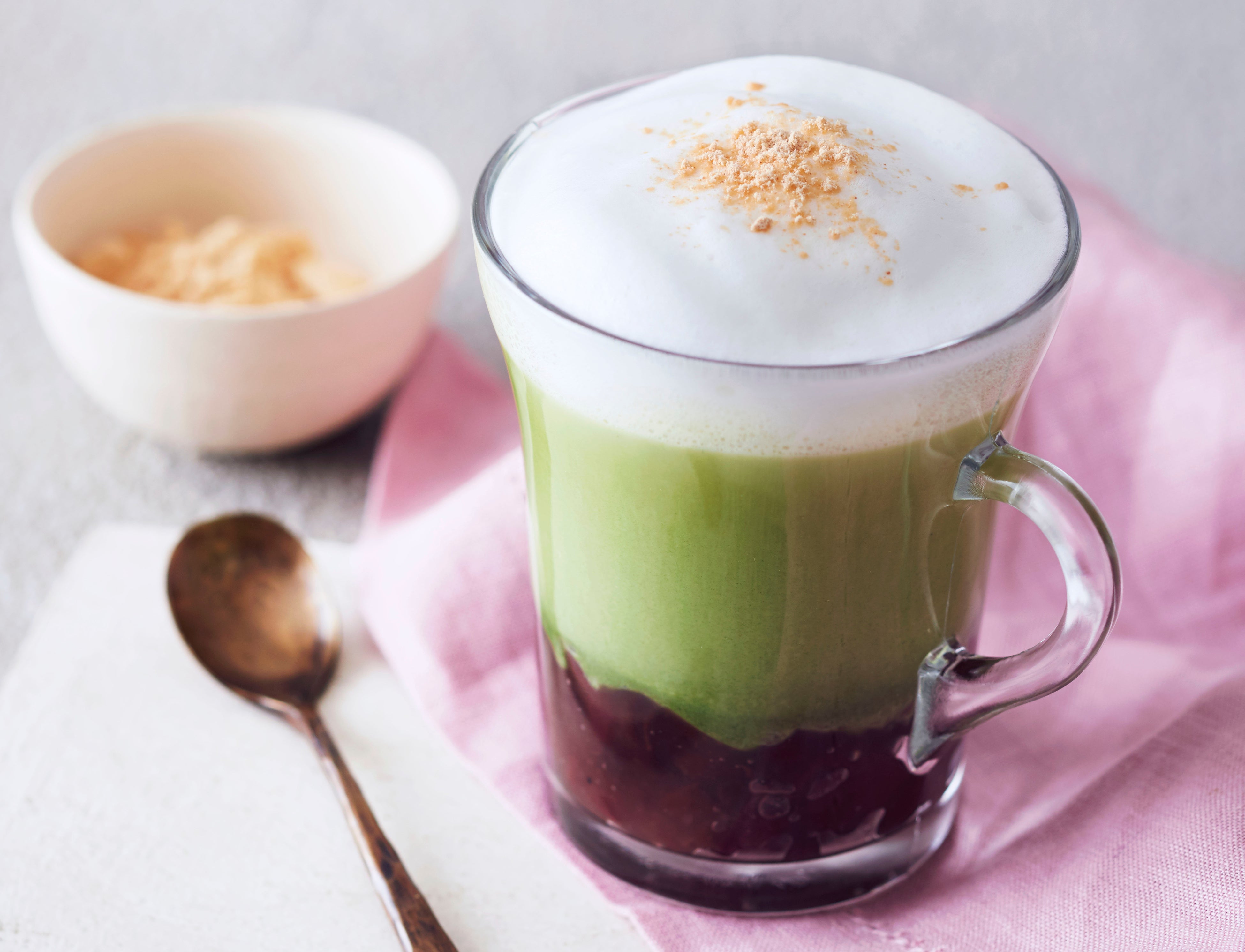 あずきと厳選宇治抹茶ミルクが層になった、ぜんざいのような抹茶のツートンラテ