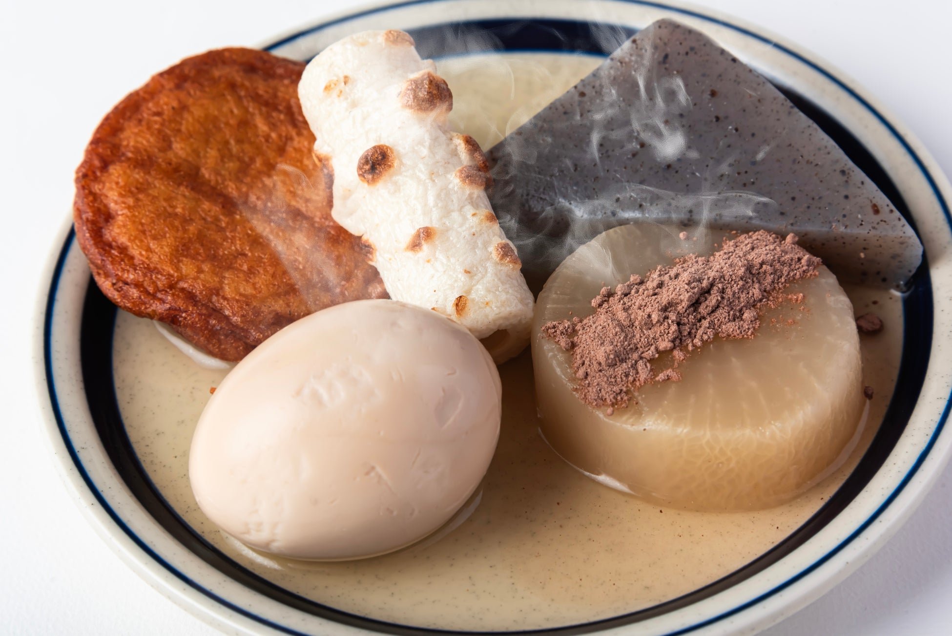 醤油のコクが際立つ、真っ黒なお出汁が食欲をそそる静岡のソウルフード。仕上げにふわりとかけるだし粉が、香りと旨みをさらに引き立て、ひと口ごとに奥深い味わいが広がります。