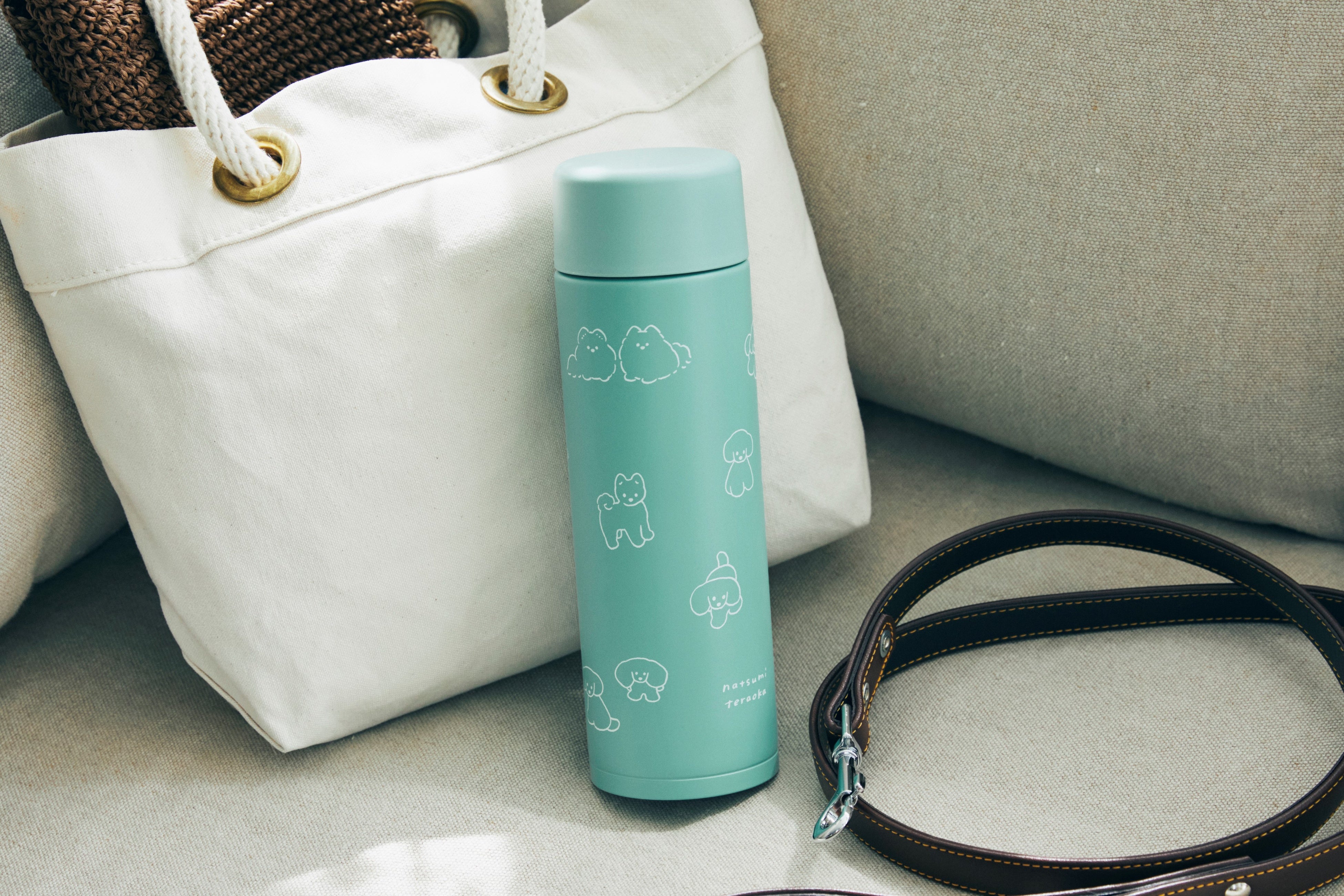 今回のコラボレーションでは、せんとパッキンが1つになることで、お手入れがしやすい「シームレスせん」シリーズに人気のイラストレーターてらおかなつみさんのイラストを採用。やさしい風合いのわんちゃんがかわいらしく、ボトルを使うたびに癒されるデザインになっています。