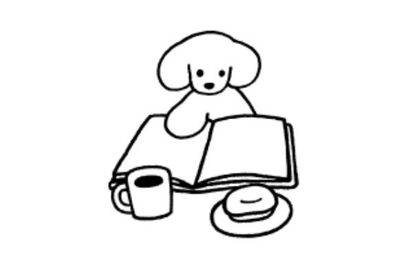 ミディアムグレー柄:読書中のまんまるおててのわんちゃん。 お休み前も、一緒にね。