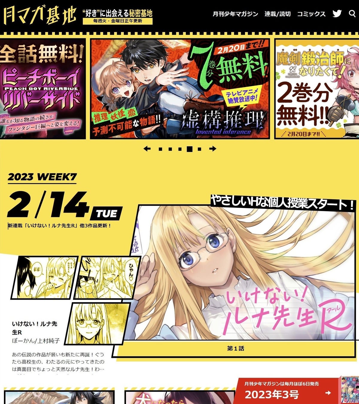 講談社の「月マガ基地」は月刊少年マガジン編集部が運営するWebマンガサイトです。毎週火曜、金曜更新で多くのオリジナル連載作品が掲載され、あなたの「好き」に出会える秘密基地を目指します。