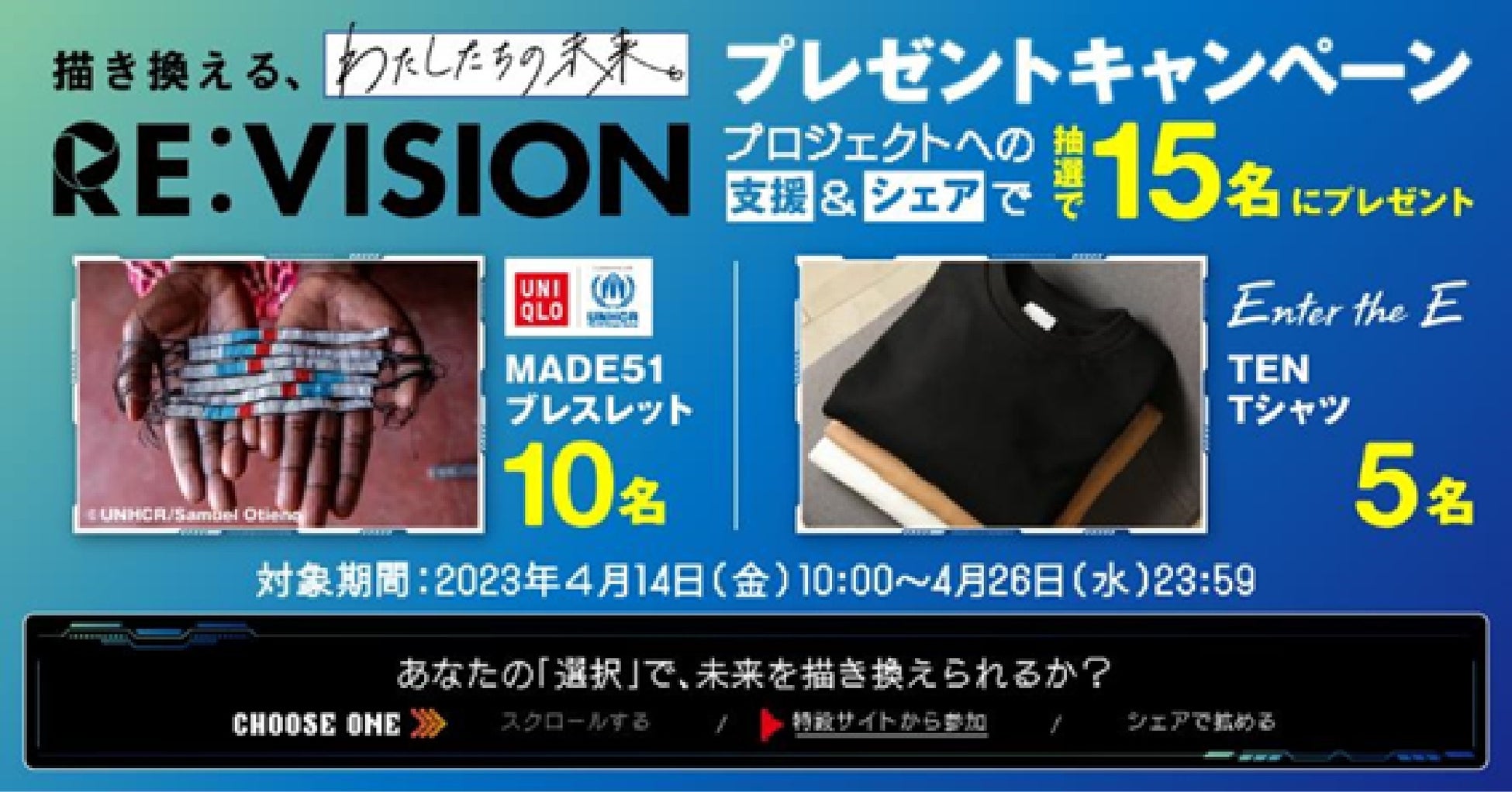 - 【RE:VISION × UNIQLO × Enter the E】ご支援&シェアされた方から抽選15名にプレゼント!