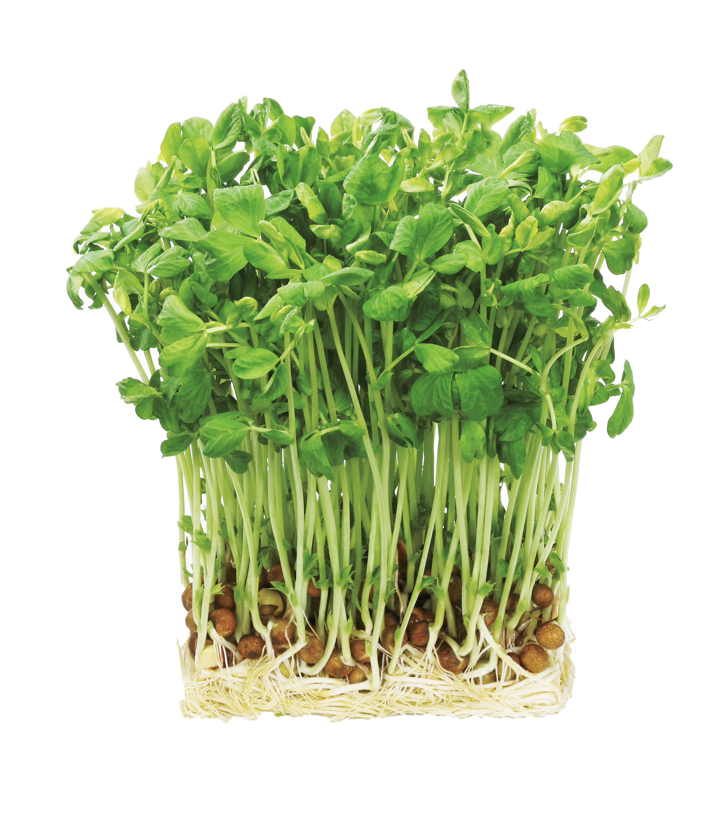 ⾖苗は、発芽したばかりのえんどう⾖(グリーンピース)の若菜で、ほのかな⾖の香りとシャキシャキした⾷感が特⻑の緑⻩⾊野菜。植物⼯場で⽣産されるため1年中価格が安定していて、節約にもぴったりな常備野菜としておすすめです。