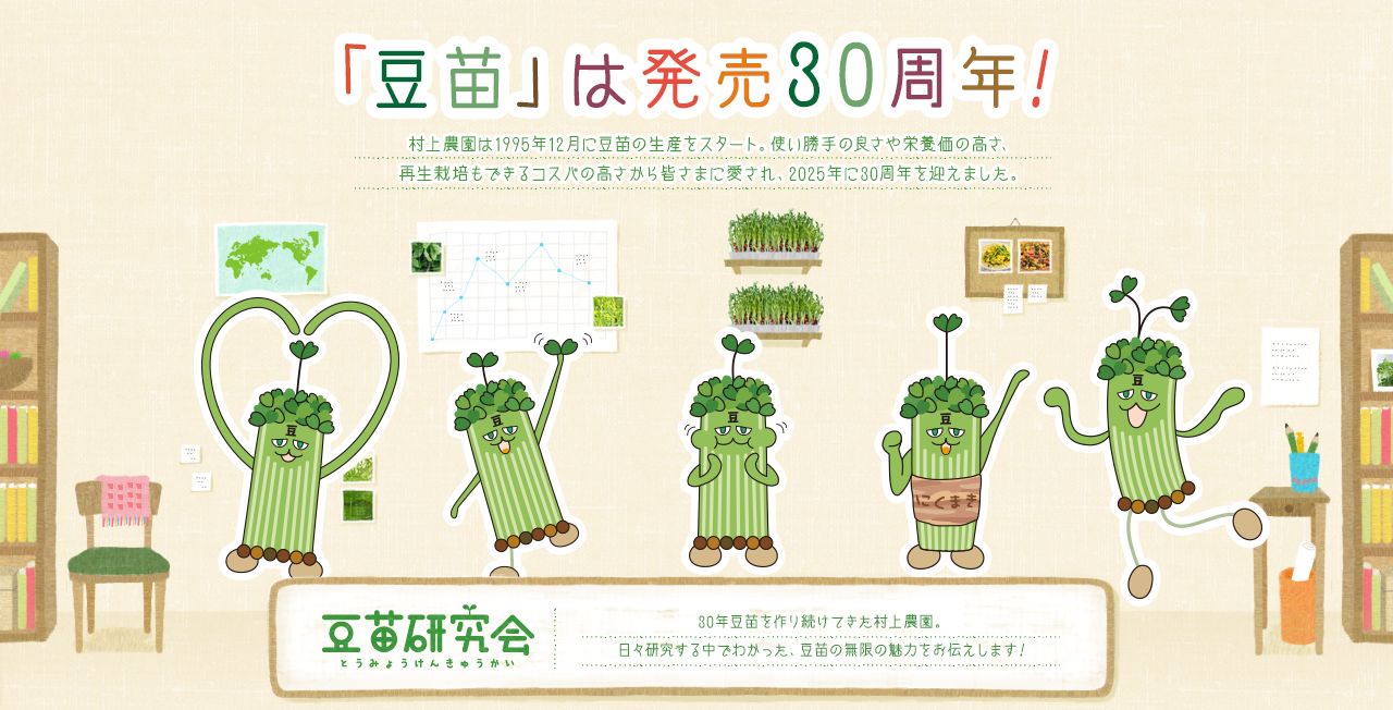 また30周年に合わせ、豆苗のブランドサイト「豆苗研究会」のデザインをリニューアルしました。