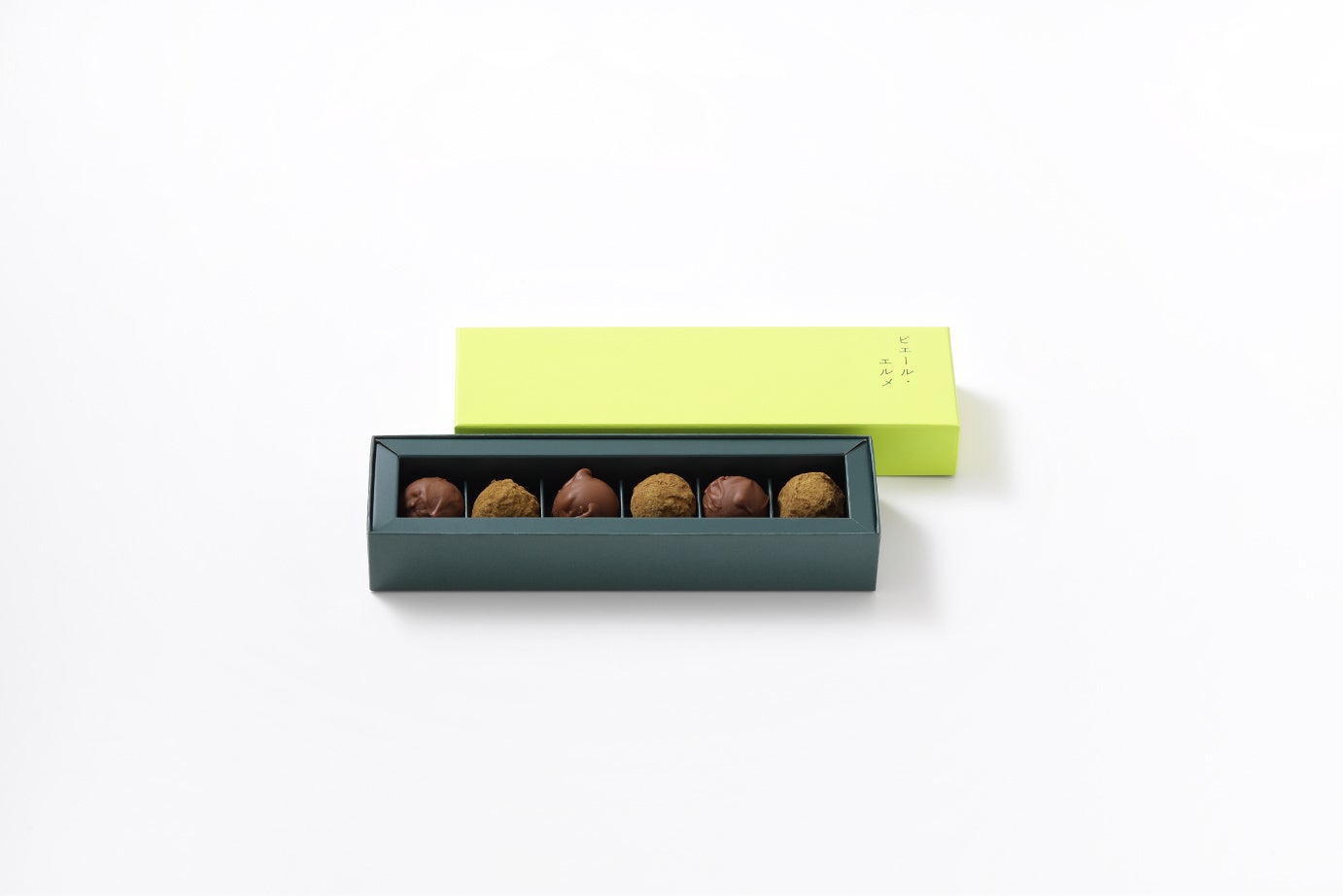和のフレーバーである抹茶とプラリネ2種のトリュフチョコレートを詰め合わせました。香ばしいプラリネの香りや、ふくよかな抹茶の風味が口いっぱいに広がります。抹茶、プラリネ 各3