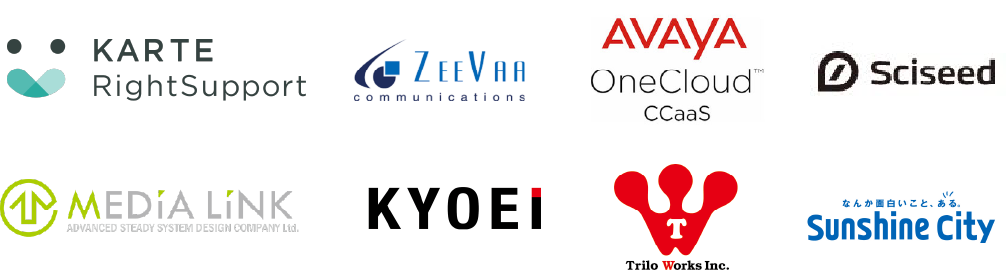 サイシード、サンシャインシティ、ズィーバーコミュニケーションズ、トリロワークス、メディアリンク、協栄産業、日本アバイア、RightTouch(五十音順)