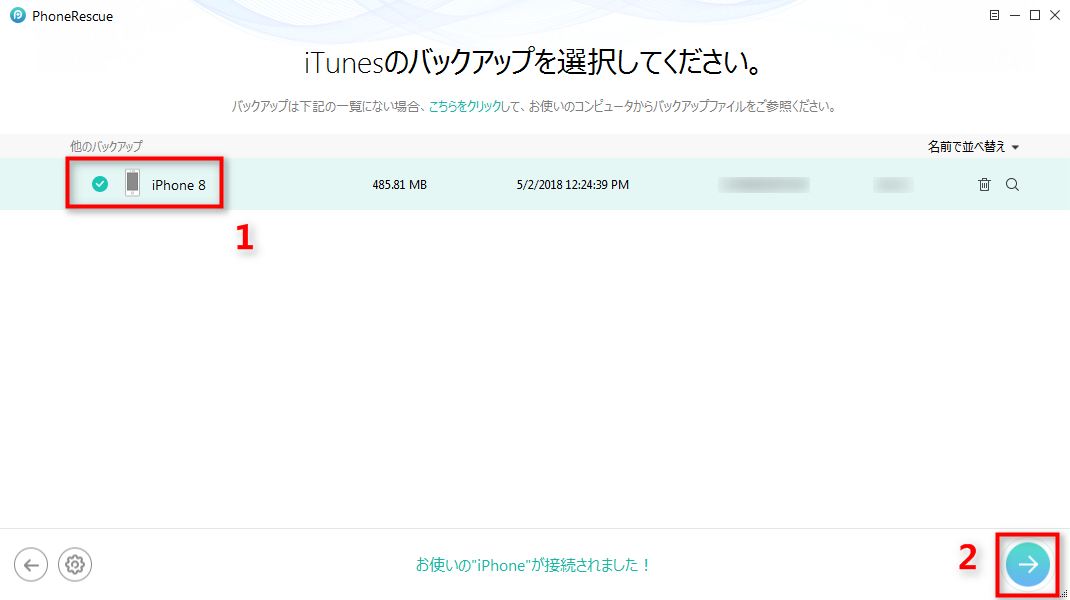 Step 2: 復元したいデータのあるバックアップを選択します。