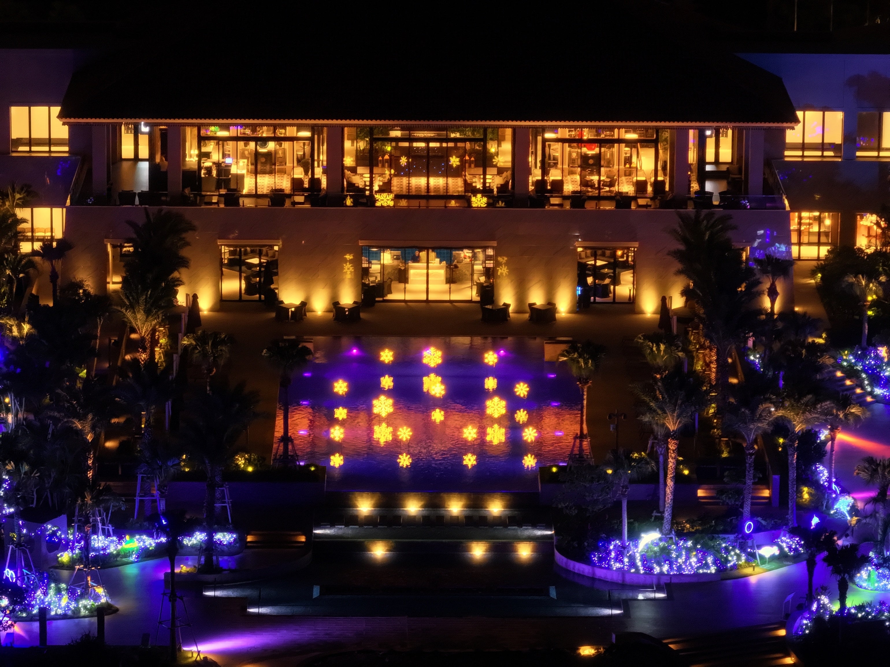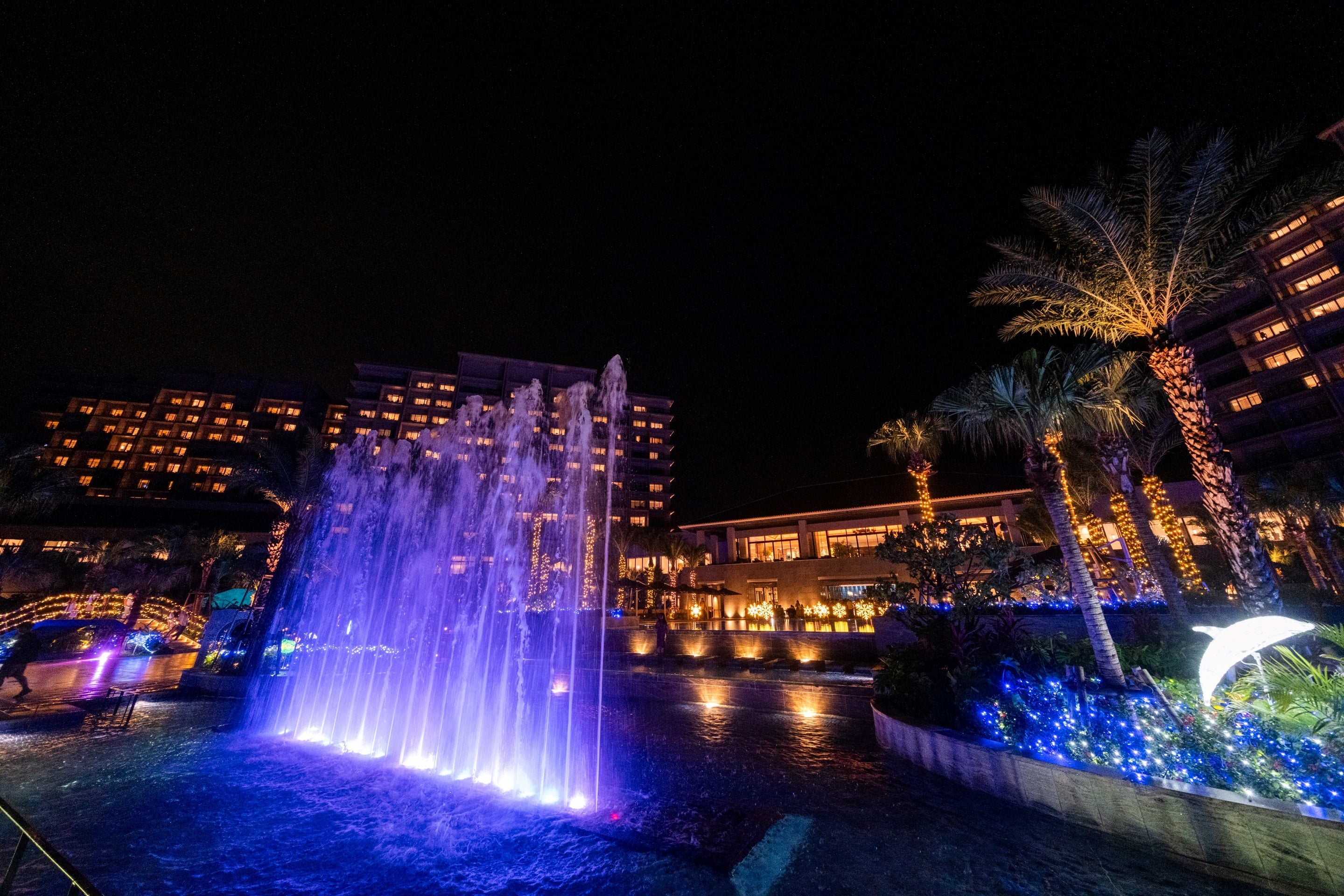 【プールエリア】 イルミネーション と南国が融合した幻想的な光の空間