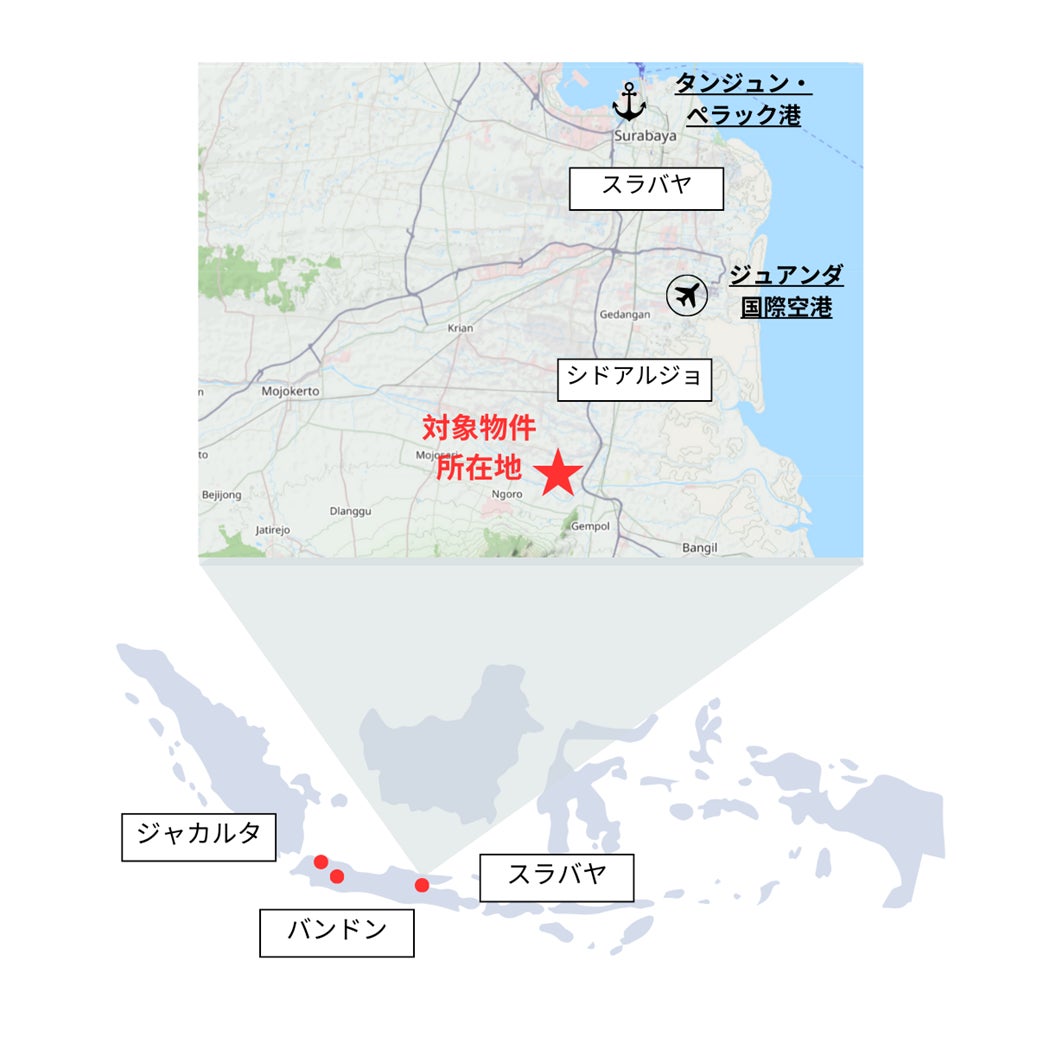 本プロジェクトは、インドネシア第二の都市であるスラバヤ市に隣接するシドアルジョ県に位置しています。また、タンジュン・ぺラック港やジュアンダ国際空港からそれぞれ約40kmの距離に位置し、東ジャワ州及び隣接する州において効率的な物流配送を可能とします。さらに、本プロジェクトは取得前に、現地の大手ハイパーマーケット(大規模なスーパーマーケット)小売業者と賃貸借契約を締結しており、満床となっております。