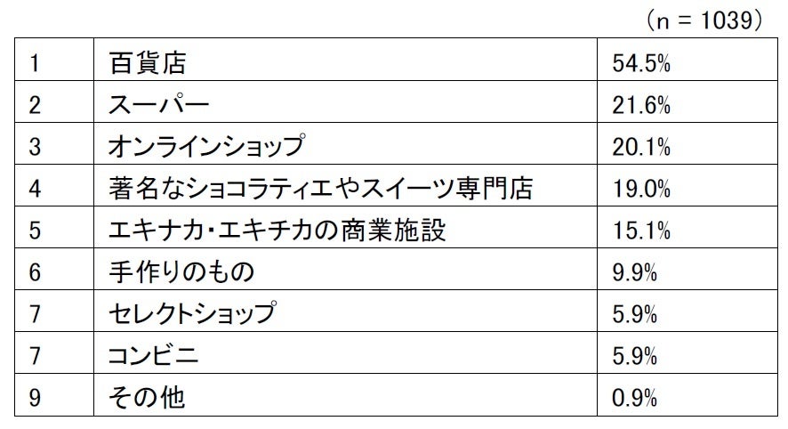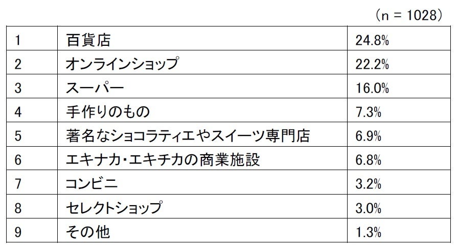 Q3.これまでにバレンタインにギフトを贈ったことのある方にお尋ねします。コロナ禍となった一昨年(2020年)以前まで、バレンタインギフトはどこで購入していましたか?(複数回答)