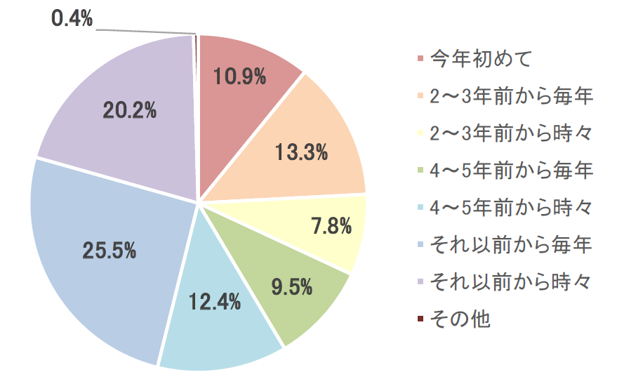 Q8.Q6で「購入予定」とお答えになった方にお尋ねします。バレンタインのご自分へのご褒美ギフトはいつ頃からされていますか?(n = 417)