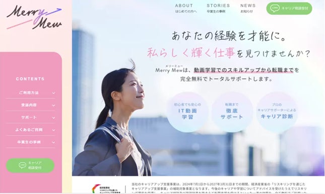 BCC株式会社(本社:大阪市中央区、代表取締役社長:伊藤 一彦、以下当社)は、創業以来22年間、IT業界に特化した教育プログラムを実施し、クライアント企業の課題解決に貢献できる人材を育成してきた豊富な実績とノウハウがある点が評価され、2024年10月、経済産業省「リスキリングを通じたキャリアアップ支援事業」の補助事業者に採択されました。当社は転職支援サービス「Merry Mew(メリーミュー)」(https://www.merrymew.e-bcc.jp/)を通して、キャリアアップを目指す方の転職支援を行っております。