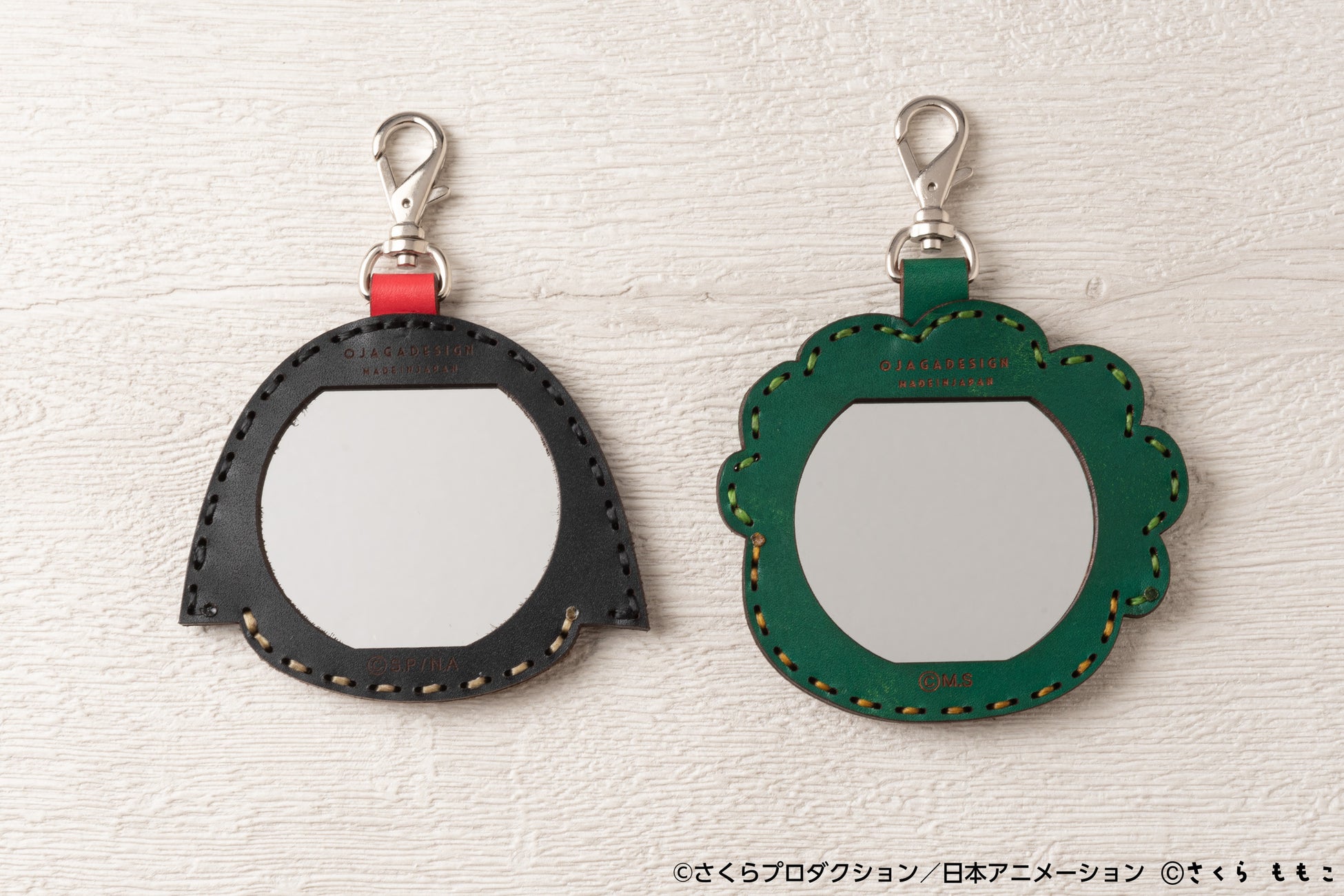 このたび、さくらももこ先生原作の人気作品「ちびまる子ちゃん」と「コジコジ」との新作コラボレーションとして、OJAGA DESIGN ならではのハンドステッチの温もりある風合いにより、まる子とコジコジの愛らしい笑顔をそのまま「ミラーキーホルダー」に落とし込みました。