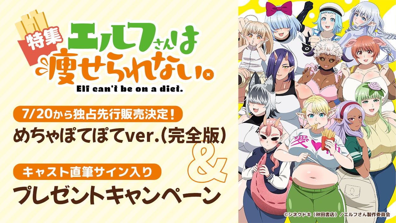 AnimeFestaにて『エルフさんは瘦せられない。 』めちゃぽてぽてver.独占販売開始!豪華プレゼントキャンペーンも実施中!