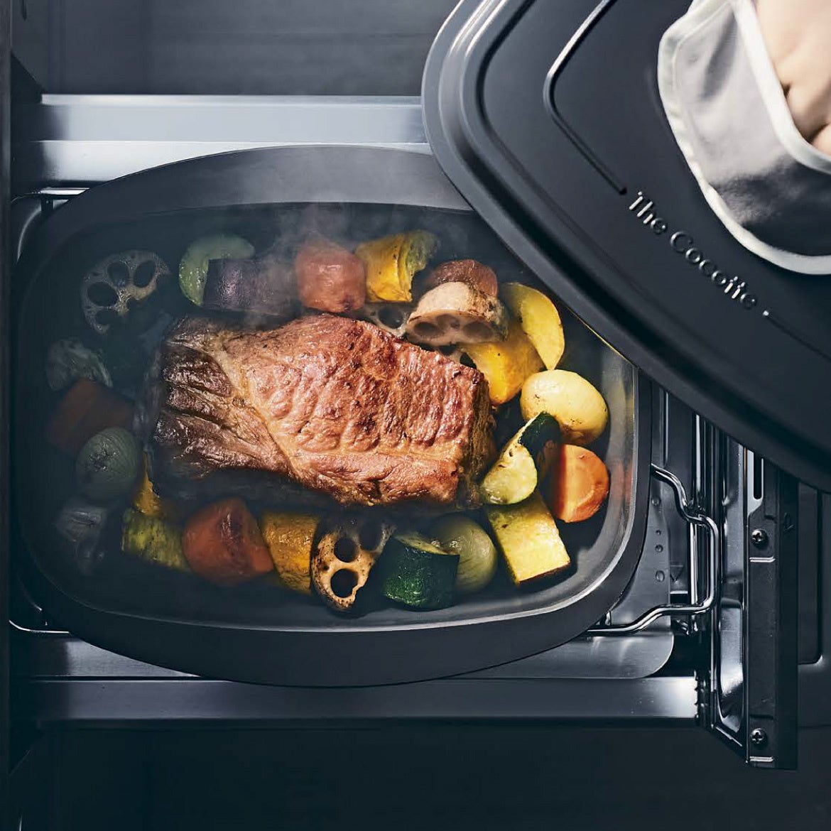 オーブン調理、無水調理、低温調理、蒸し調理など、多様な調理に対応。