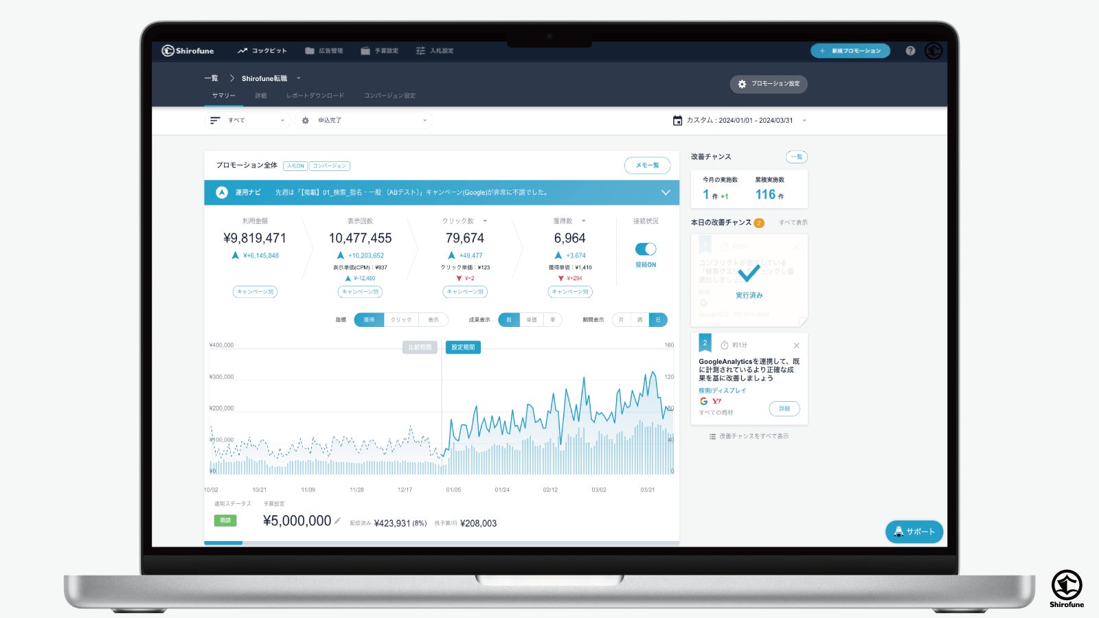 Shirofuneは、「1日10分でプロ品質の広告運用」を実現する、広告運用自動化ツールです。