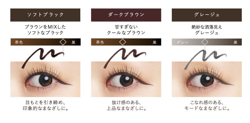 「マットリキッドアイライナー」は、①発色が物足りず何回もアイラインを引くのが大変、②アイラインが馴染みにくく、他のメイクから浮いてしまうことがあるのが気になるという意見をもとに、メイク馴染みの良いマット処方でテカリ感を抑え、一回で濃厚発色、リキッドなのにペンシルアイライナーのようなまぶたへの馴染みにこだわりました。