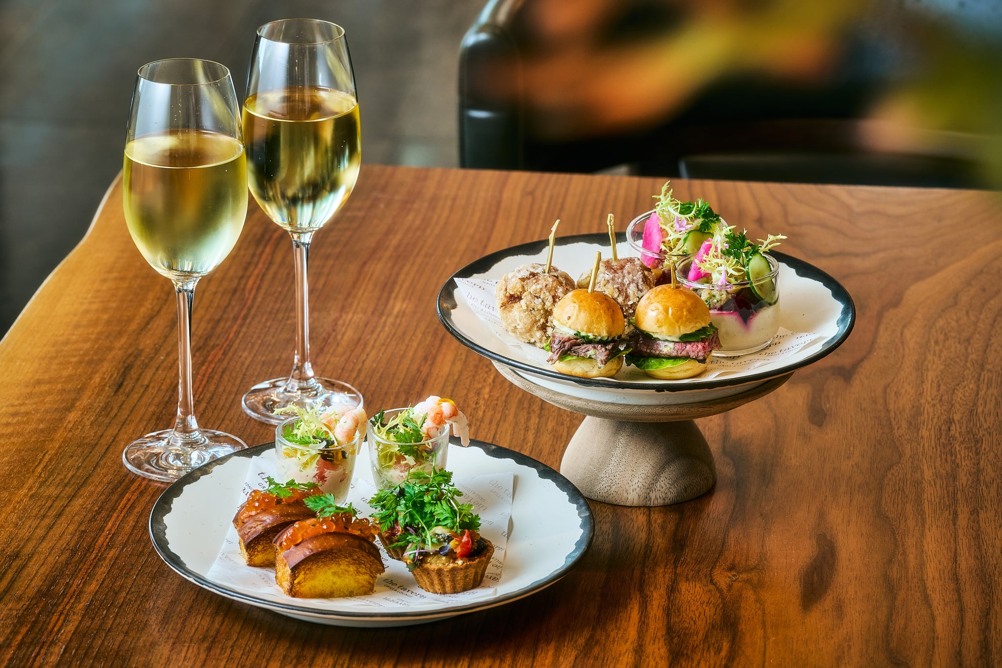秋の夕暮れ時をグラス片手にゆったりと過ごす「オータムアペリティフ」をご用意しました。香り豊かなマッシュルームを贅沢に使った「マッシュルームのキッシュ」や、トリュフマヨネーズで味わいを引き立てたミニサイズの「タヴァンスライダー」、いくらとハーブがアクセントになった「スモークサーモンのブリオッシュサンド」など、秋の素材を活かしたカナッペ6種とともに、2時間のフリーフロードリンクをお楽しみいただけます。「シャンパーニュプラン」では、シャンパーニュをはじめ赤・白ワインやビール、ミクソロジーハイボール、ソフトドリンク各種をご用意。よりカジュアルに楽しめる「スパークリングワインプラン」では、シャンパーニュの代わりにスパークリングワインをご提供いたします。高層階から望む夜景とともに、秋の深まりを感じるひとときをご堪能ください。