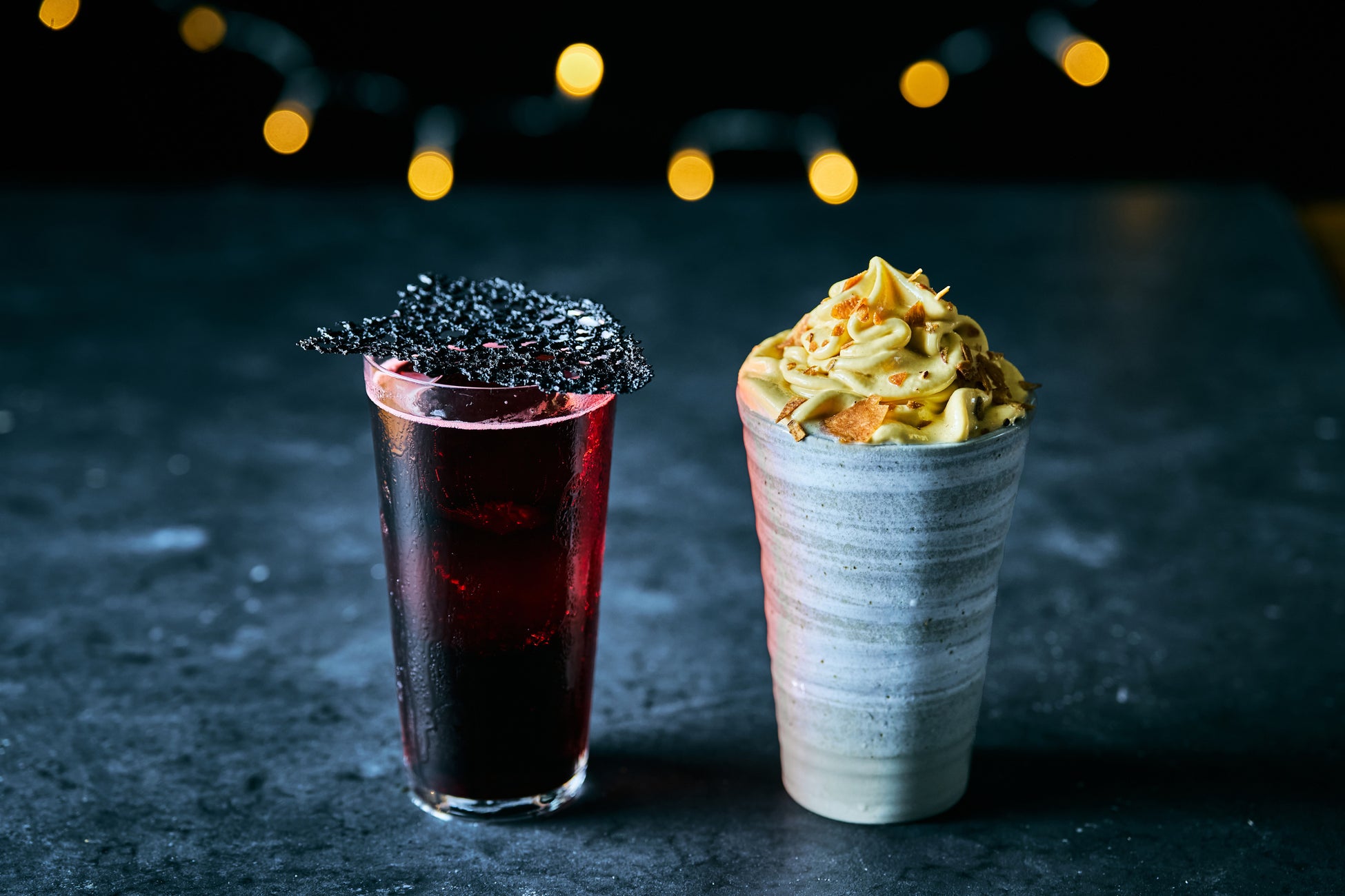 (チョコレートラム、ヘーゼルナッツリキュール、オーツバニラミルク、ソーダ、スイートポテトエスプーマ)