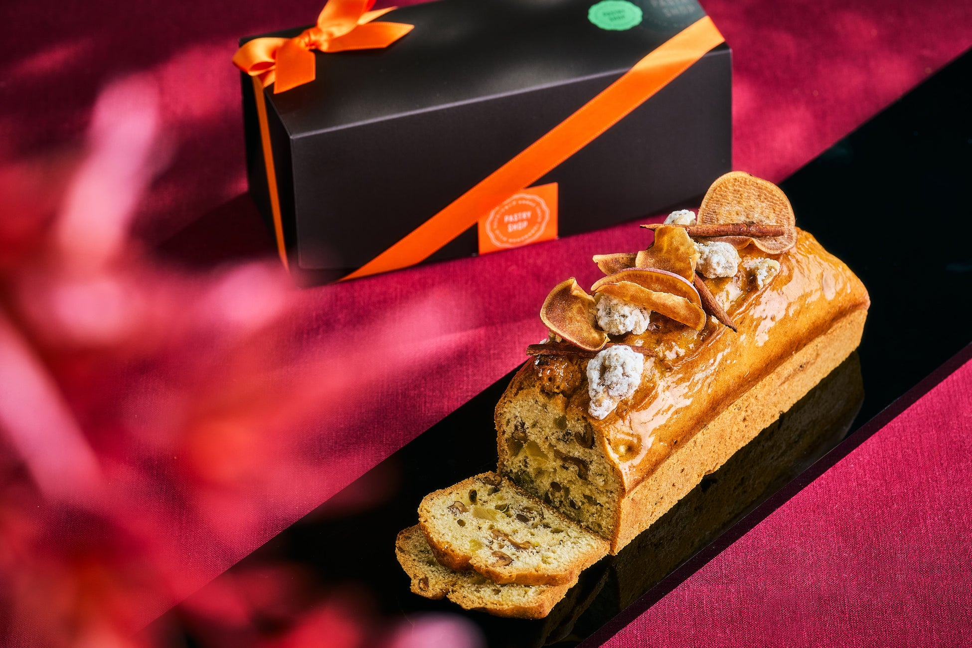 「さつまいもと黒ごまのロールケーキ」は、さつまいもとさつまいも風味のシャンティクリームを、香ばしい黒ごまを使用した生地でふんわりと包みました 。仕上げに紫いものシャンティクリームとごまをあしらった、見た目にも美しい風味豊かなスイーツです。さつまいもの自然な甘さに芳醇なバターのコクを重ねてしっとりと焼き上げた「さつまいものパウンドケーキ」は、ピーカンナッツが食感と風味のアクセントとなった、ひと口ごとに秋の深まりを感じさせる逸品です。また、日本有数の産地から届くいちじくを贅沢に使用した「いちじくのチーズケーキ」は、果実そのものを味わうような濃密な味わいが特長。フレッシュのいちじくに加え、いちじくを使用した香り高い自家製のジュレ、シロップやピューレ、やさしく抽出したいちじくの葉のインフュージョンを組み合わせ、ひと口ごとに奥行きのある風味が広がります。