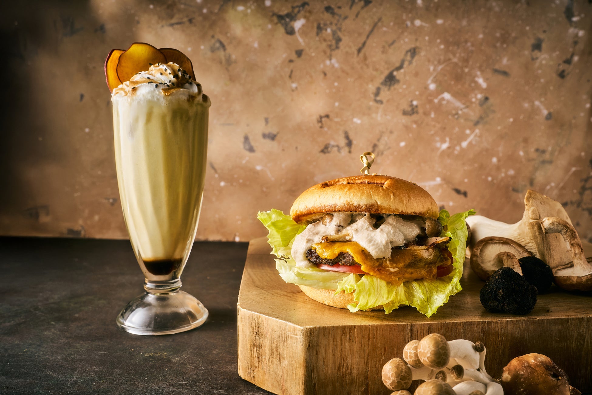 BeBuではこの秋、“オータムクエスト”をテーマに、マッシュルームやさつまいもなど旬の食材を使用したこだわりのメニューを期間限定でご提供いたします。「マッシュルーム チーズメルト ベーコンバーガー」は、トリュフが香るジューシーなビーフパティに、とろけるマッシュルームフォンデュと濃厚なレッドチェダー、香ばしく焼き上げたベーコンを贅沢にサンド。幾層にも重なる旨味に、フレッシュなレタスやトマトの爽やかな食感が絶妙なアクセントを添え、ひと口ごとに満足感が広がります。「スイートポテトシェイク」は、さつまいもの自然な甘さと食感をそのまま閉じ込めた、まるで“飲むスイートポテト”のような贅沢な一杯。黒蜜と黒ごまがコクを添え、どこか懐かしくも洗練された、大人の秋のデザートドリンクです。季節の味覚をカジュアルかつ上質に楽しめる、心ときめく秋の味わいをお楽しみください。
