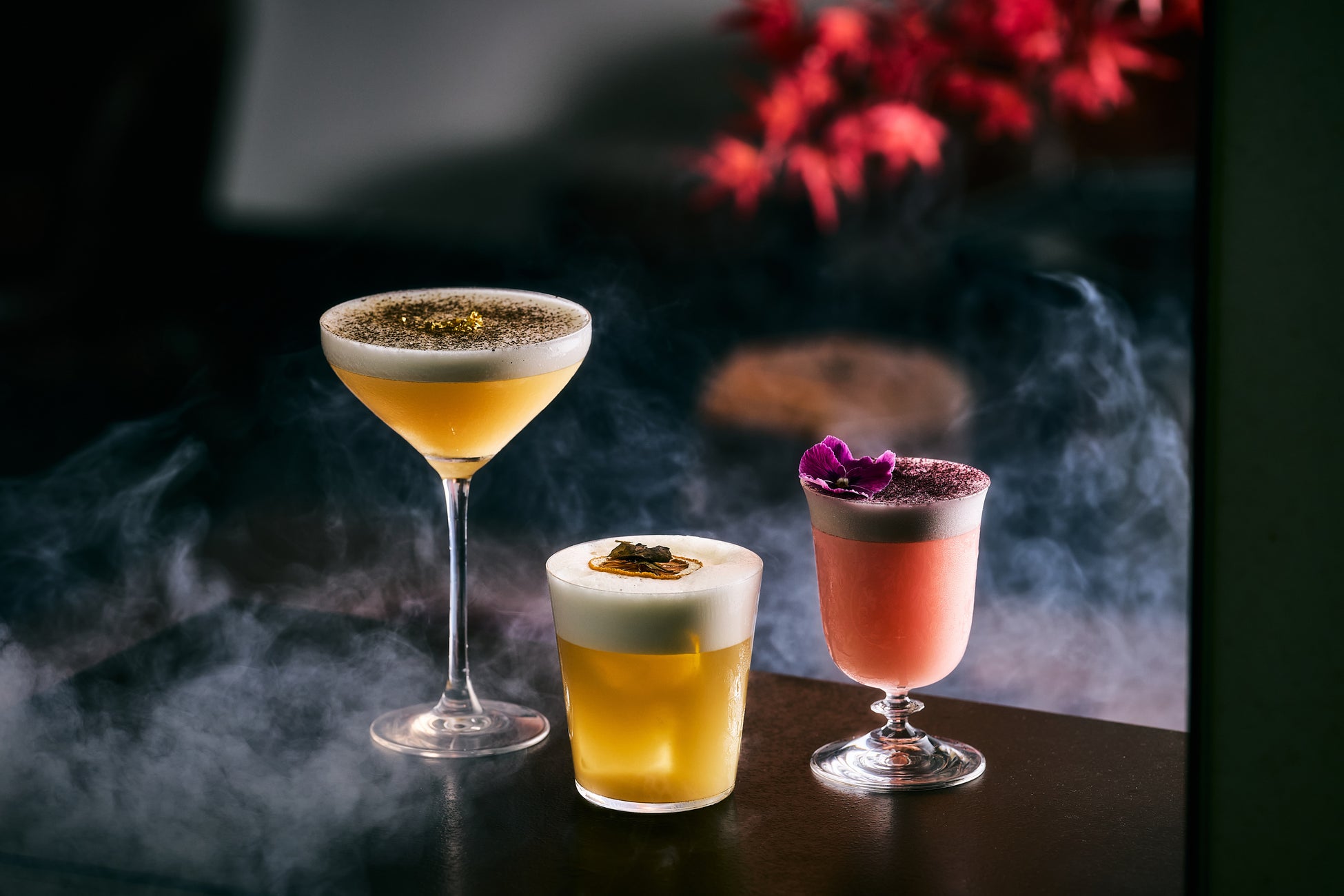 ルーフトップ バーでは、香ばしい茶葉の香りや果実と、卵白の繊細なテクスチャーが焼酎と重なり合う3種のカクテル「焼酎サワー」をこの秋限定でご用意いたします。お茶の香りを巧みに取り入れるプレミアムティーと季節のフルーツを使用したカクテルは、バーのシグネチャースタイル。それぞれ異なる焼酎に、焙じ茶や番茶、赤しそなどの和素材を丁寧に重ね、奥行きのある味わいと香りを引き出しました。卵白のなめらかな口当たりが、秋の夜風に溶け込むようなやさしさを添え、五感で楽しむ“和のミクソロジーカクテル”としてお楽しみいただけます。約250mの高層階から望む美しい夜景とともに、季節の移ろいや日本文化の奥深さを感じる一杯をご堪能ください。