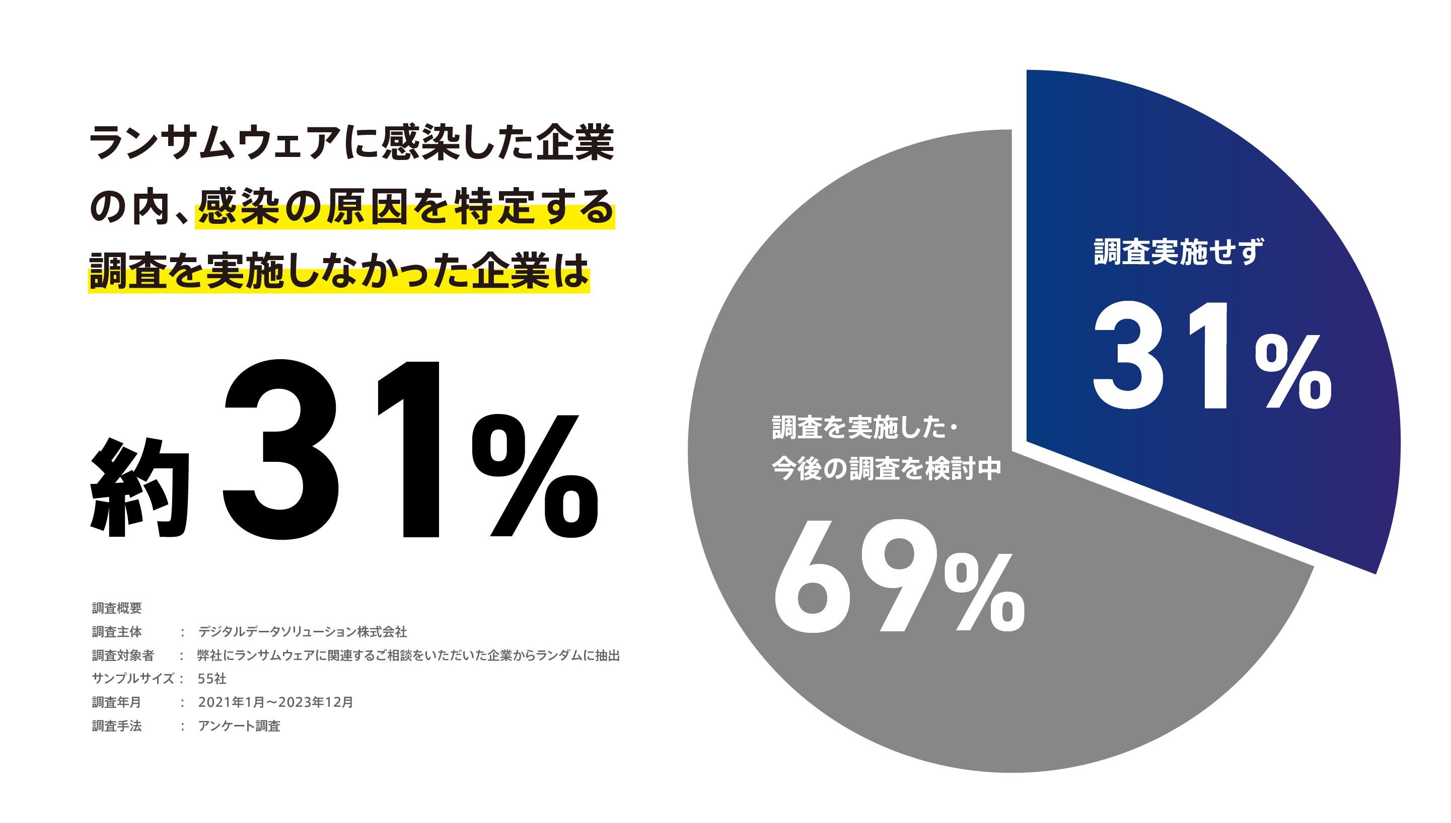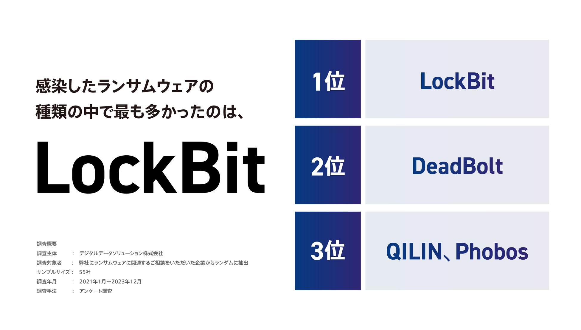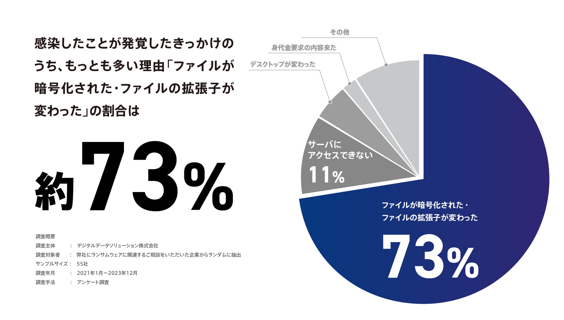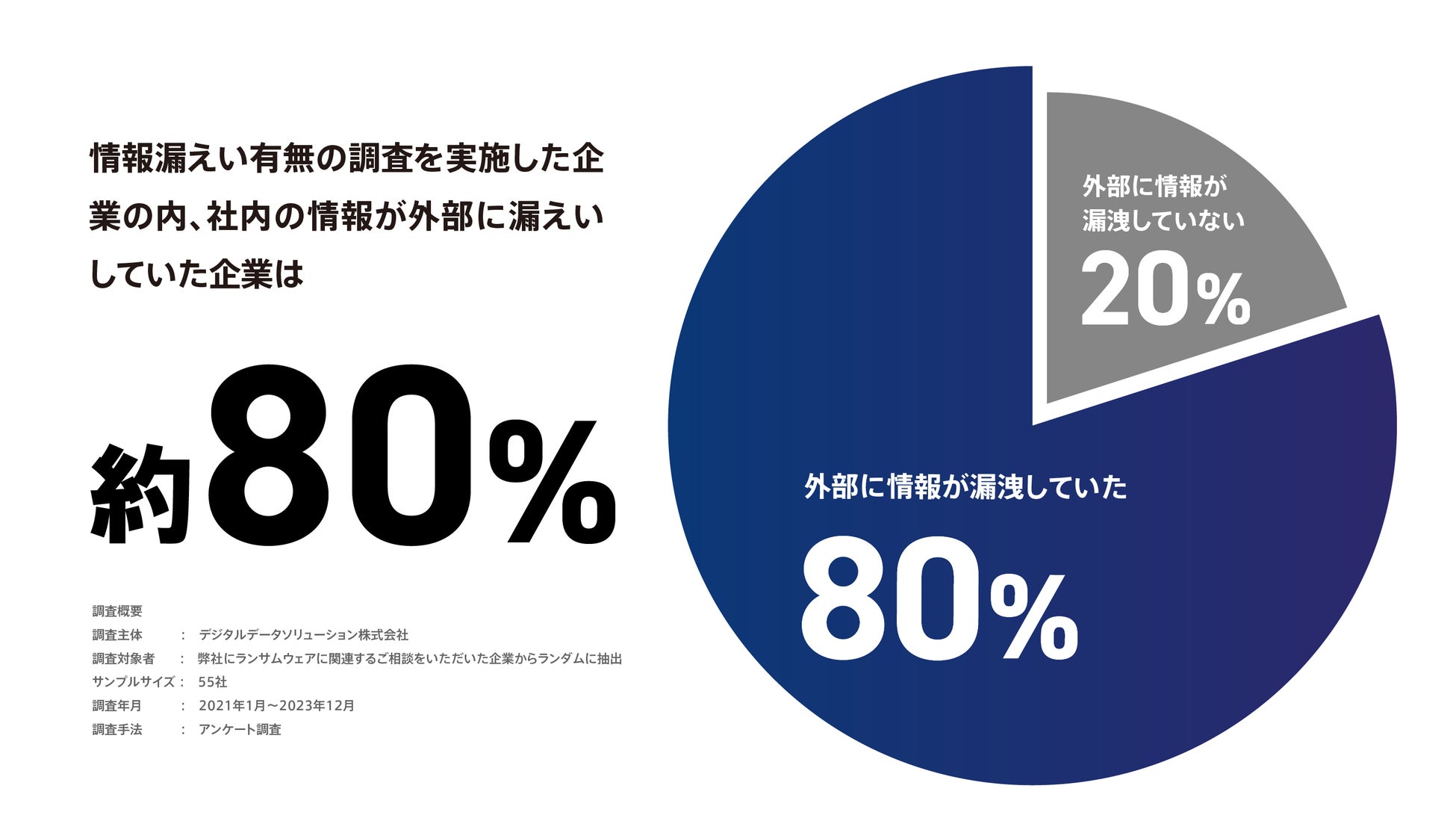 <ランサムウェアに感染し、フォレンジック調査を行った企業の約8割で情報漏えい被害が判明*1>デジタルデータソリューションがランサムウェア被害に関する調査を発表