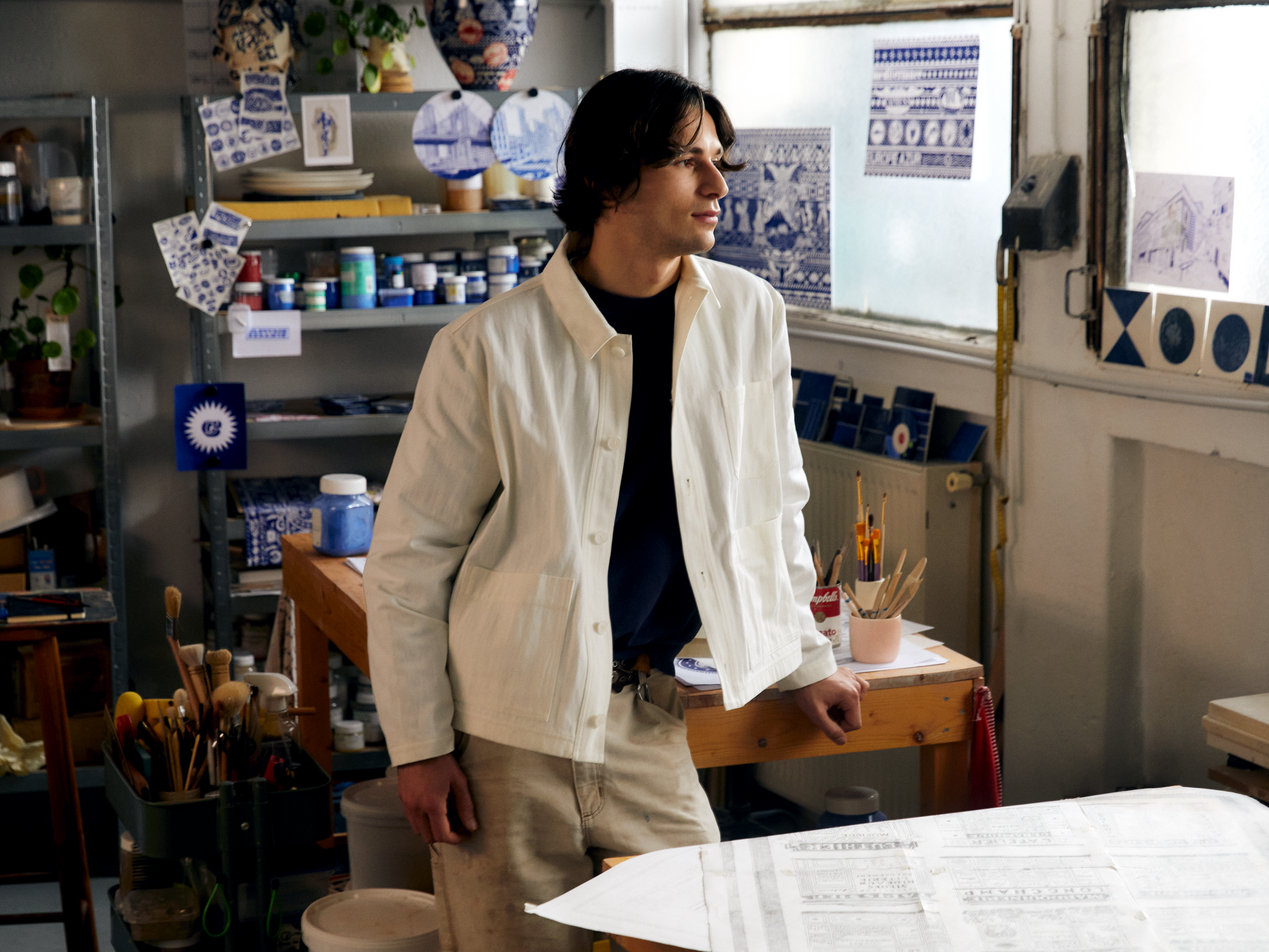 マロキネリ(革製品専門店)にブーランジェリー(パン屋)、フルリスト(花屋)、リブレリー(本屋)、アンカードルモン(額装専門店) - アルチザンと暮らしのサヴォアフェールが根づく街、パリ。“現代のパリジェンヌ”たちは、時間をかけて育まれる美学に満ちた街を散策しながら、パリへの愛と“自分らしさ”を深めます。メゾンはパリを拠点に活動するイラストレーター兼陶芸家であるコンスタンタン・リアンを起用し、創業の地 パリへの想いを込めて、彼のシグネチャーカラーである青色で緻密に描き下ろされた詩的で感性高まるパリの街並みを世界中に届けます。