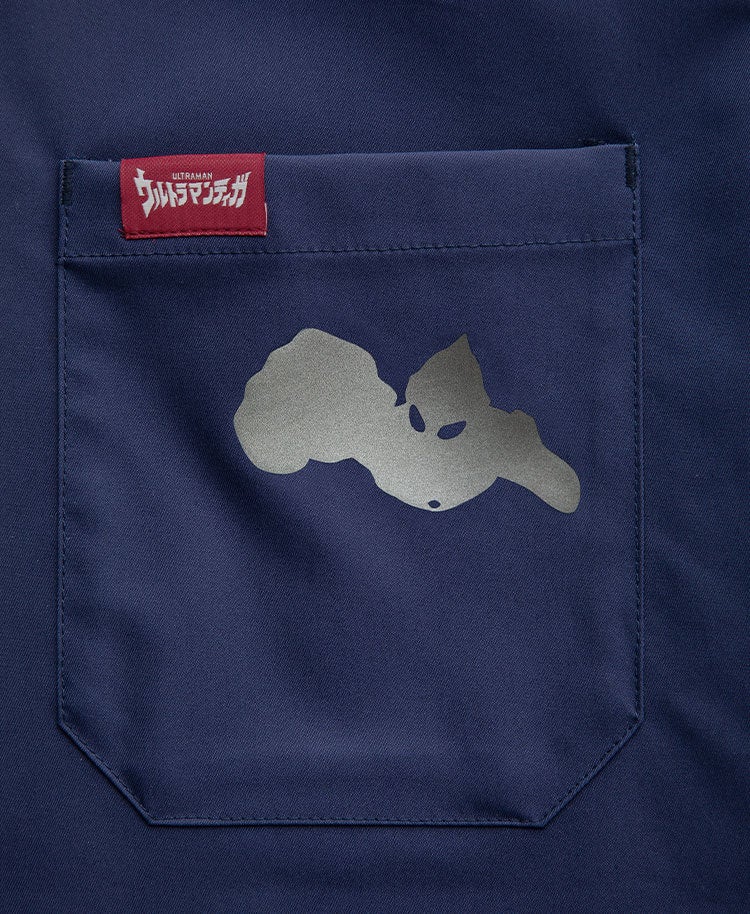 カラーはウルトラマンティガをイメージした配色で、胸元のポケットにはメタリックプリントのシルエットが施されアクセントになっています。また背裏に入ったアートワークはクラシコのロゴを配したスペシャルなアートワークとなっています。