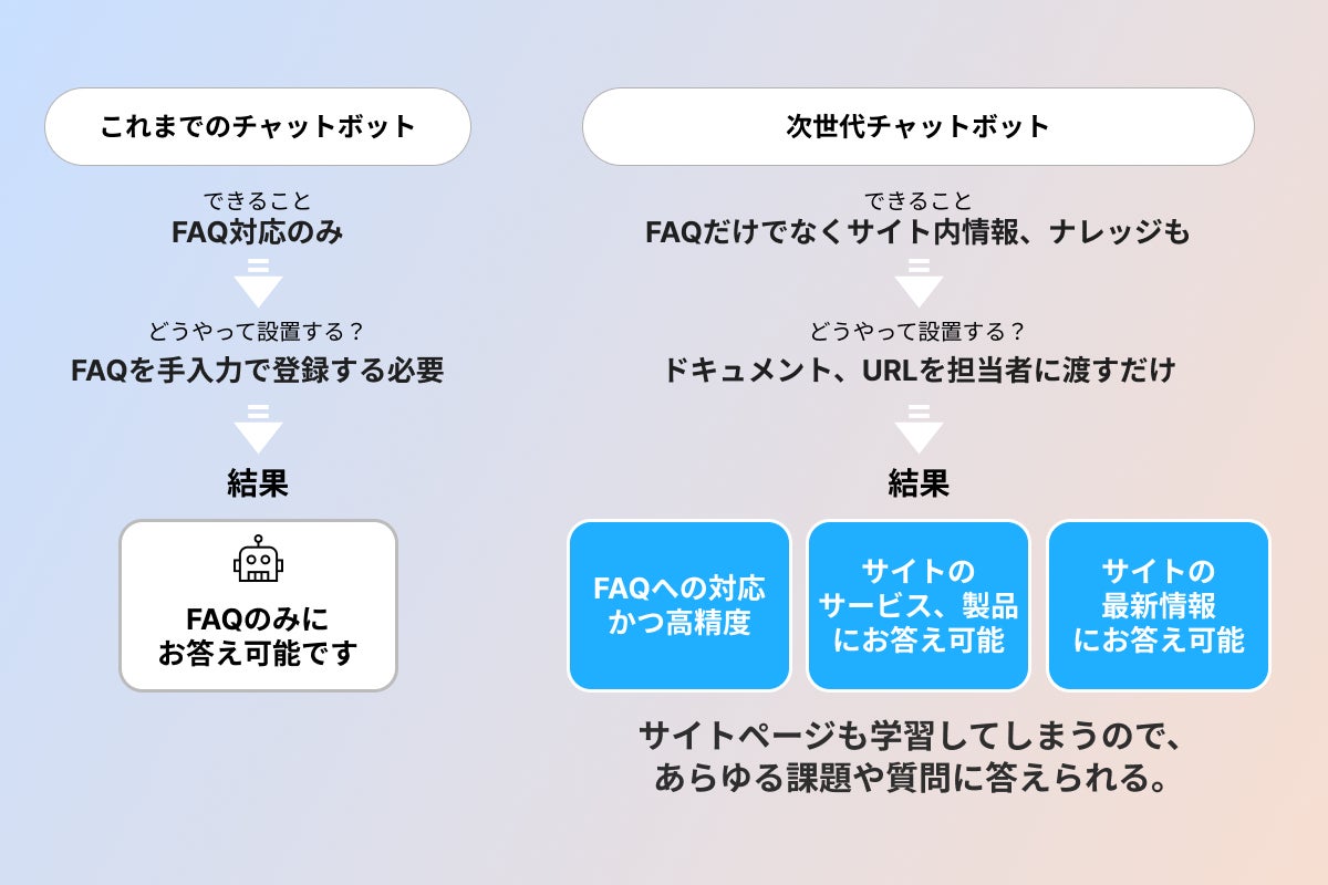 同時に、これまでのチャットボットに見られる、導入・運用の手間を一気に解決したことも大きなポイントです。