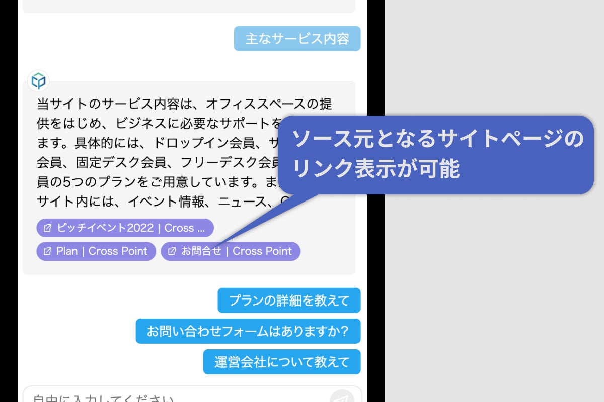 サイト学習、ドキュメント学習どちらにも対応し、幅広い回答が可能に
