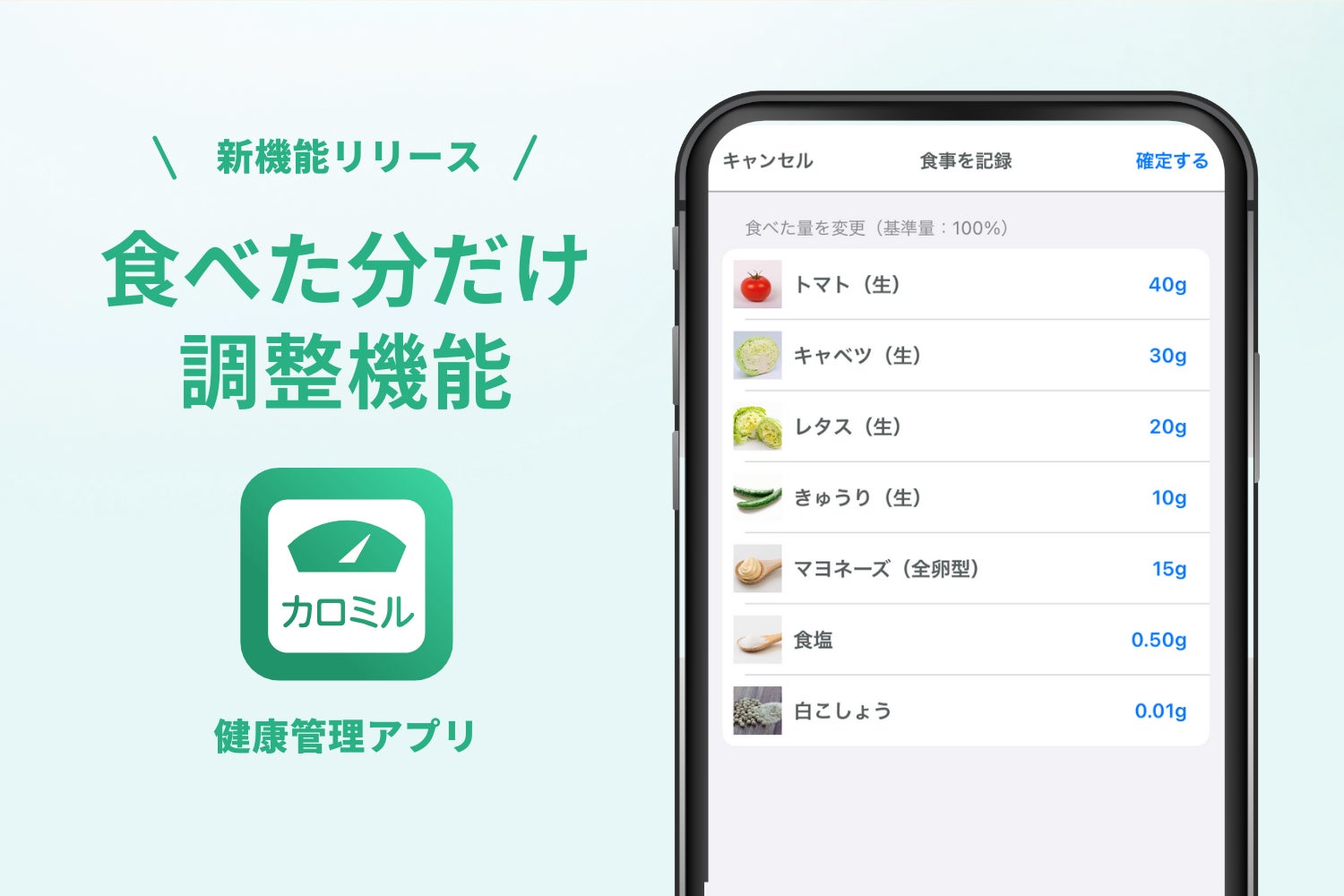健康管理アプリ「カロミル」に「食べた分だけ調整機能」を新たに追加 「サラダのドレッシングを抜いた」なども記録可能に