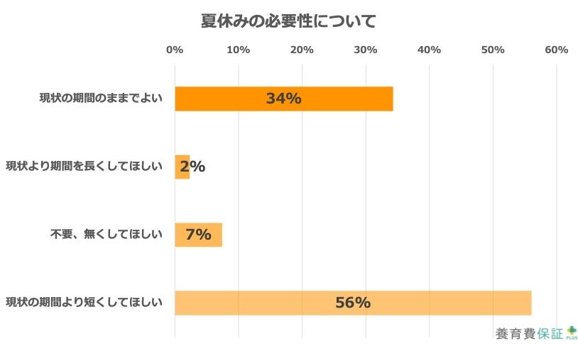 「現状の期間より短くしてほしい」と答えた方が56%という結果になりました。その理由として、子どもの面倒を見るための労力や、生活費、