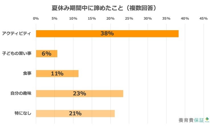 「アクティビティ」が最も多く38.3%、次に自分自身の趣味が23.4%という結果になりました。シングルマザーならではの事情から、