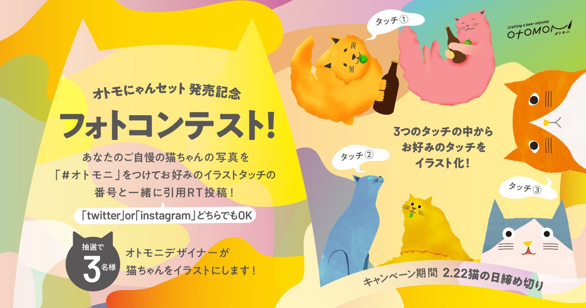 クラフトビールのサブスク「Otomoni(オトモニ)」を運営するmeuron株式会社(本社:東京都豊島区 代表取締役:金澤俊昌)は、2/22の猫の日を記念して、オトモニデザイナーが愛猫をイラストにするフォトコンテストを開催します。
