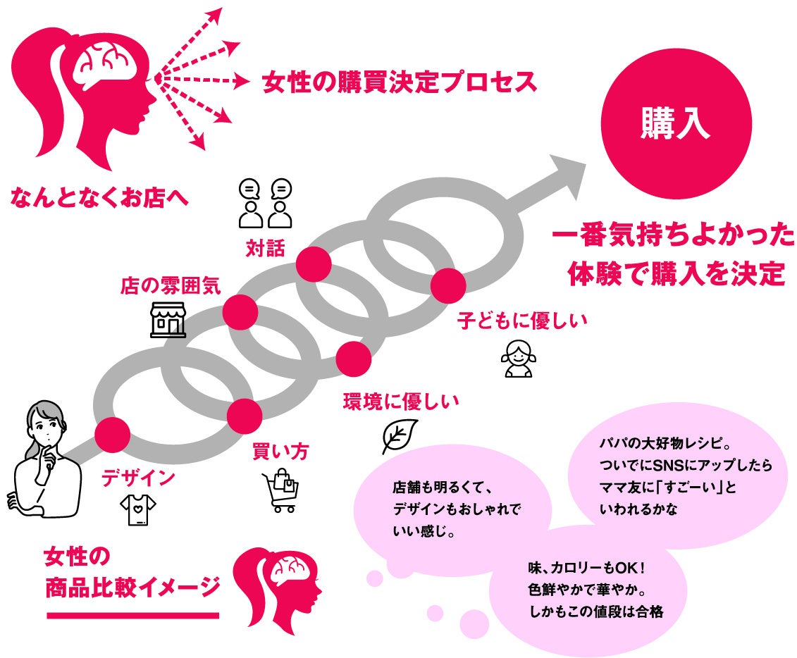 企業のマーケティング・商品開発・販促設計においては、男女別の購買意思決定プロセスを意識し、
