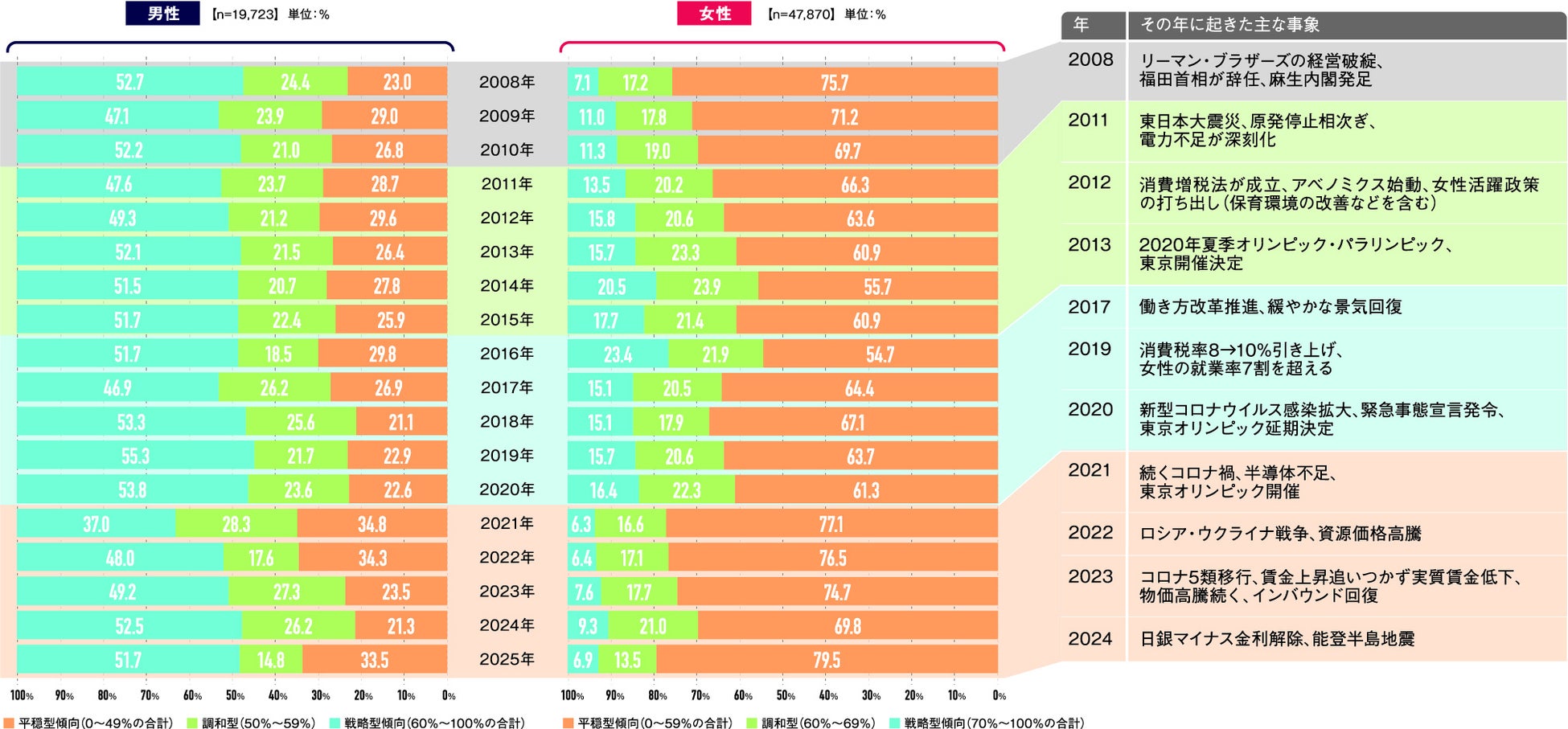 男性は近年「調和型」が微増 → 育児・家事参加の影響と推察