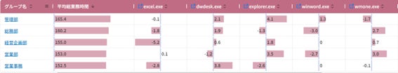 更に今回「課題分析レポート」機能の追加により、グループ別のPC稼働状況や業務におけるシステムの稼働状況の傾向をより直感的に把握することができ、今までなかなか確認が難しかった粒度での業務実態の把握を行うことで、真の課題となっている業務に対しての的確なアプローチを実現します。