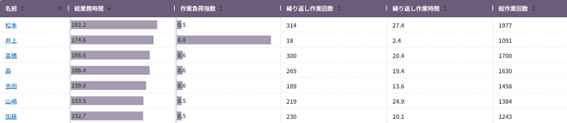 生産性の向上や効率化を進めていく上では、どの部署やどの従業員へ業務が偏っているか負荷がかかっているかを把握し問題点を見つけていく必要があります。また、稼働時間と合わせて作業回数を可視化することで、効率的に業務を遂行できている従業員のやり方を展開するなどまずは実態を定量的に把握することで課題となりそうな対象を定めていきます。