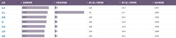 PCの稼働時間と照らし合わせて、システムの稼働時間を俯瞰的に見ていくことでどの作業で稼働がかかっているかを把握でき、課題となる対象業務の選定に活用できます。また、システム稼働時間とあわせて、システム利用頻度のばらつきを可視化することで属人的な作業か全体的に稼働がかかった作業なのか傾向を把握することができ、個々の作業で見えづらい作業負荷を定量的に可視化できます。