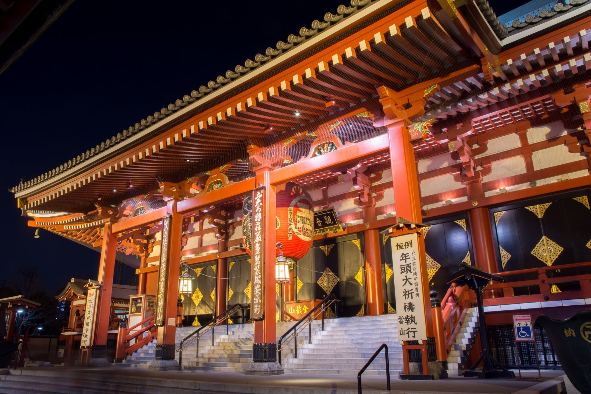 Pintオリジナルの今治のフェイスタオル(1番目)、高級伊奈利寿司専門店「福寿家」のおせち付き特製弁当(2番目)、Pintオリジナルの着心地のいい館内着(3番目)、Pintから徒歩3分の浅草寺(4番目)