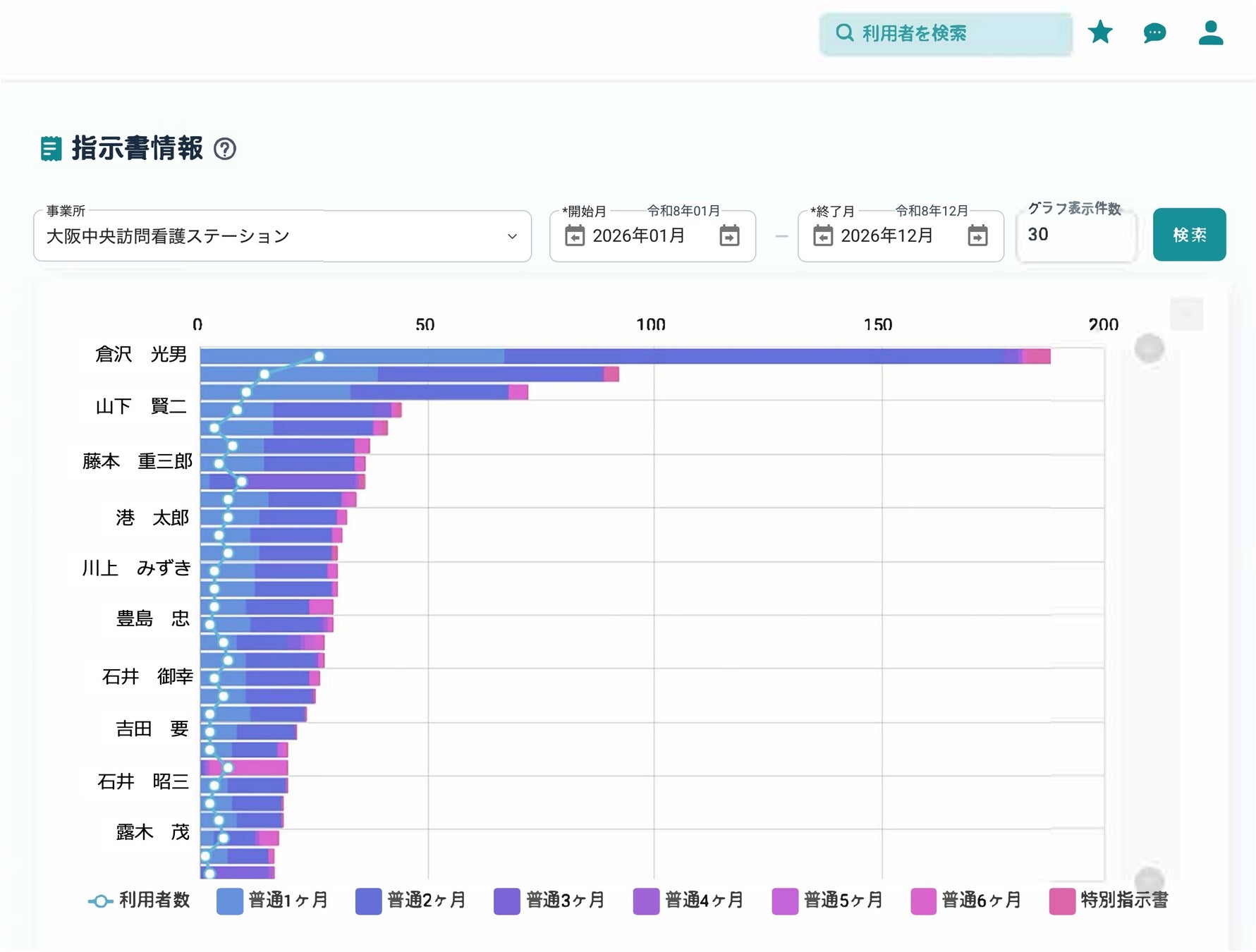 指示書枚数:医師ごとの指示書発行状況を分析し、地域連携や営業戦略の立案に活用。